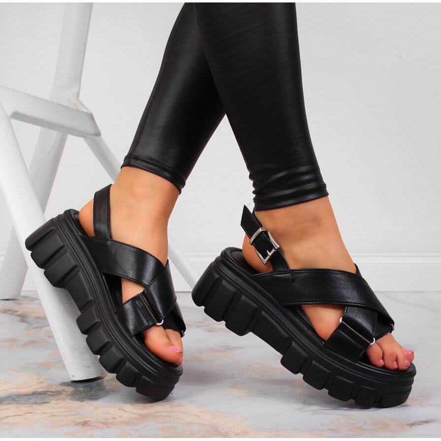 Jezzi Damensandalen auf der schwarzen Jezzi-Plattform