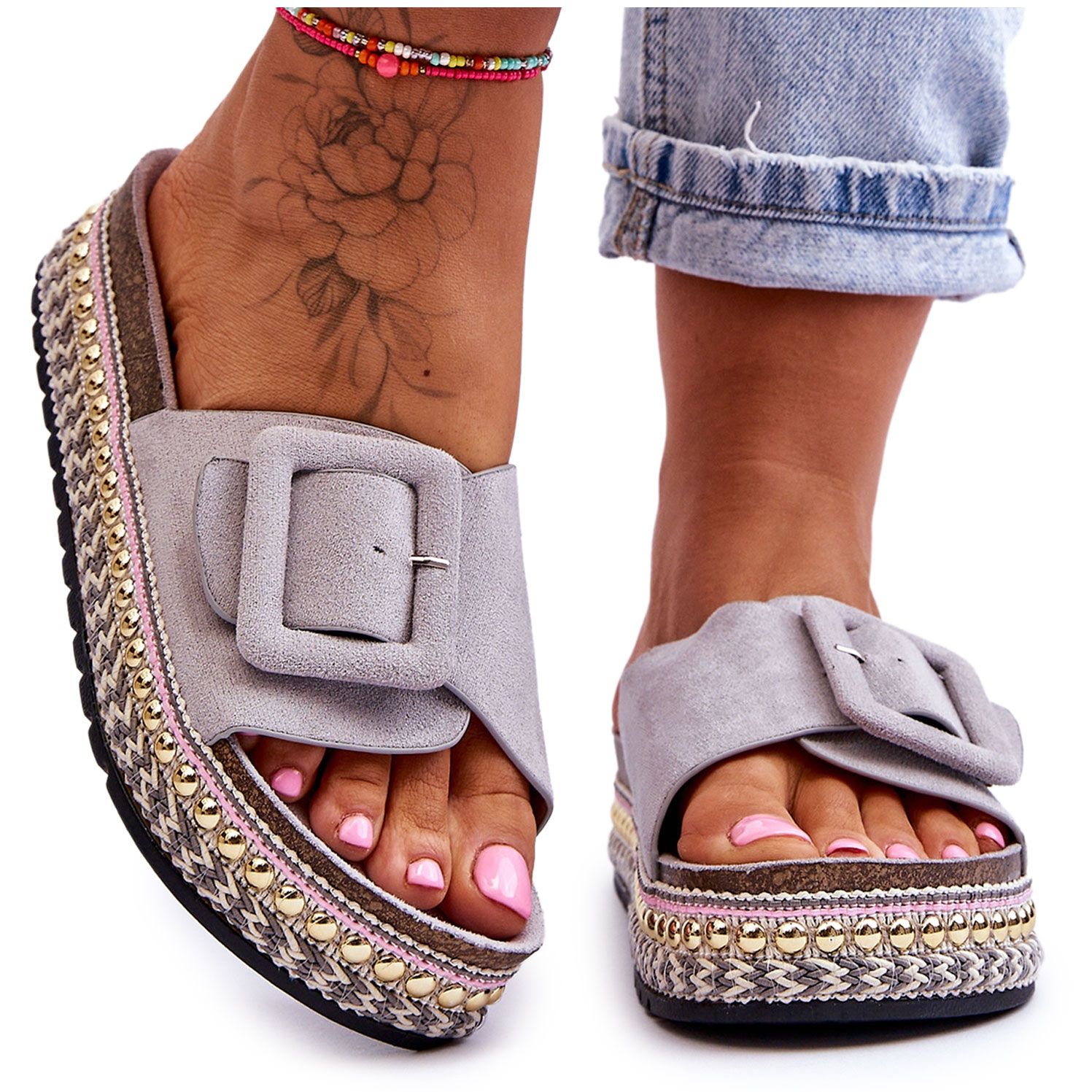 Details: Damensandalen auf einer verzierten Plattform Grey Joyce grau
