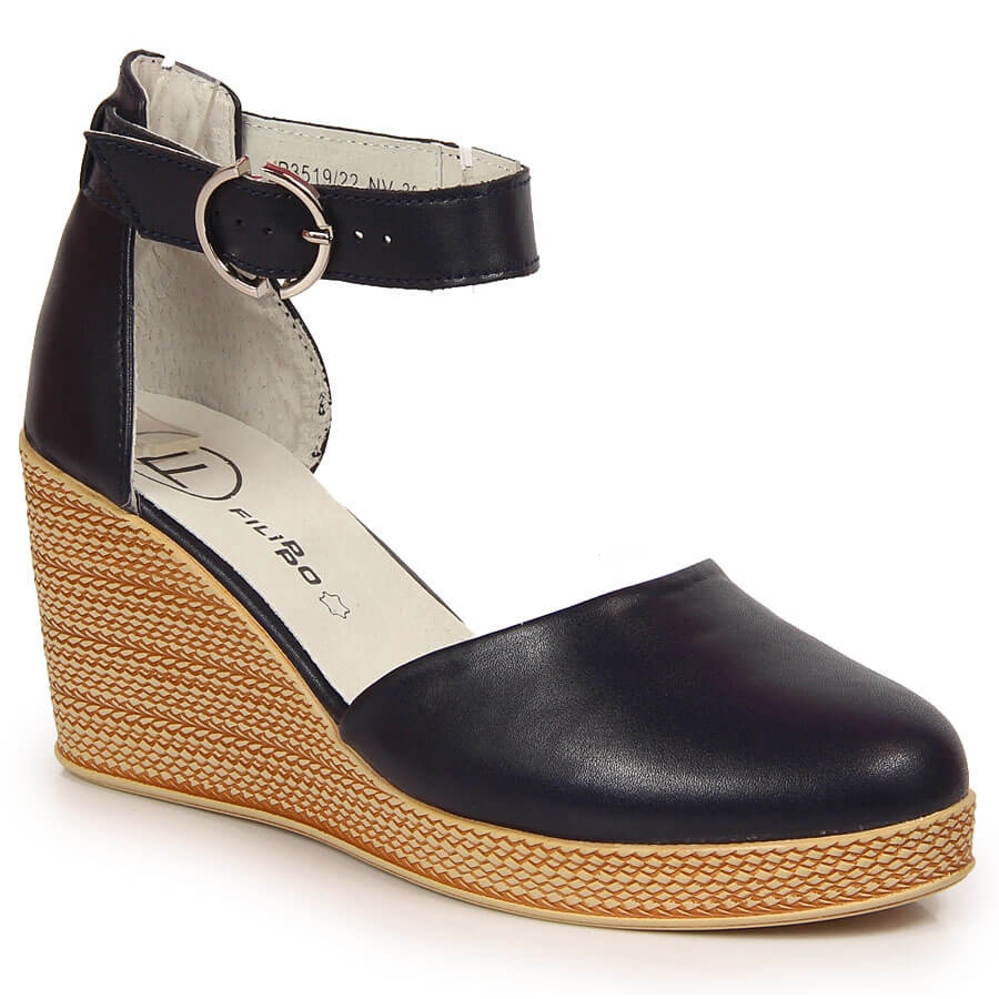 Damen-Keilsandalen aus Leder in Marineblau der renommierten Marke Filippo sind ein ideales Angebot für Frauen, die Wert auf Eleganz, modischen Stil und Tragekomfort legen. Sowohl das Obermaterial als auch die Innensohle bestehen aus hochwertigem Naturleder und sorgen auch bei längerem Tragen für Komfort, was sie zu einer hervorragenden Wahl für Sommertage macht.
