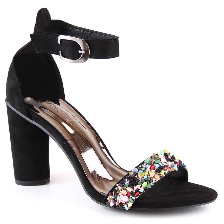 Details: Damensandalen aus Wildleder auf einem Pfosten mit schwarzen Perlen Vinceza 17259