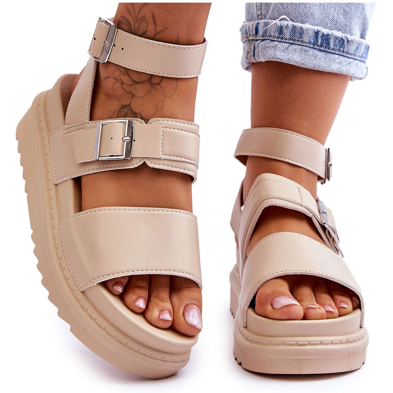 Die Sandalen zeichnen sich durch ein stabiles, massives Plateau mit einer Höhe von 5,5 cm aus und eignen sich daher perfekt für Frauen, die bequeme Absätze mit ein paar Zentimetern Höhe bevorzugen. Das Plateau ist wie das gesamte Schuhwerk in ästhetischen Beigetönen gehalten, was sie universell macht – sie lassen sich problemlos mit den meisten Outfits in Ihrer Garderobe kombinieren.