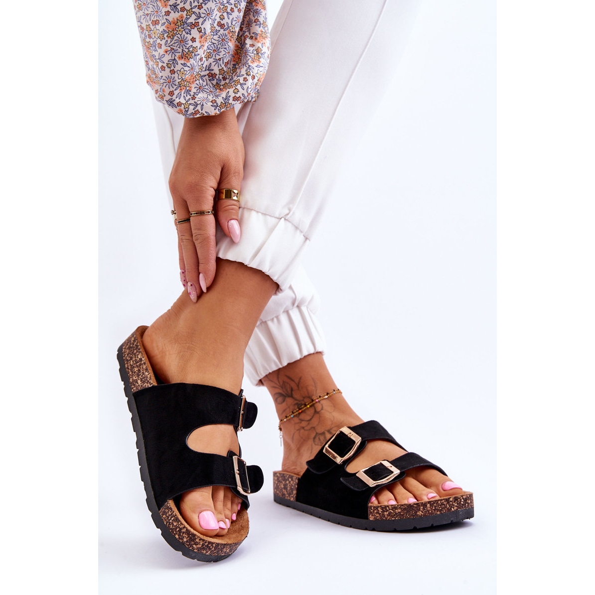 Damen -Slip -Pantoffel Cortina - Stil und Bequemlichkeit jeden Tag. Perfekt für Sommerspaziergänge und Einkaufsmöglichkeiten: Zwei mit Schnallen befestigte, verstellbare Streifen ermöglichen es Ihnen, die Breite zum Fuß zu erreichen, und der profilierte Einsatz von ökologischem Wildleder sorgt für Weichheit und Komfort im Laufe des Tages. Leichte 3 -cm -Plattform mit einem Kork -Erscheinungsbild verleiht Stabilität und kümmert sich um die Ruhe der Füße.