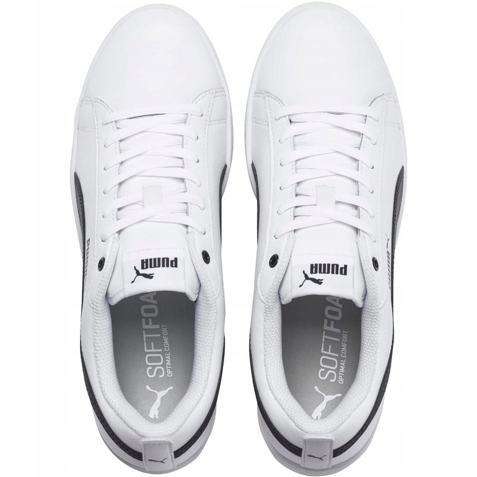Frauen Puma Smash WNS V2 L - stilvolle, komfortable und universelle Stadtschuhe in einer klassischen Kombination von Weiß mit schwarzen Akzenten (Modell 365208 01). Perfekt für den täglichen Gebrauch - für die Arbeit, für einen Spaziergang oder an der Universität - kombinieren sie einen sportlichen Charakter mit einem städtischen Look.