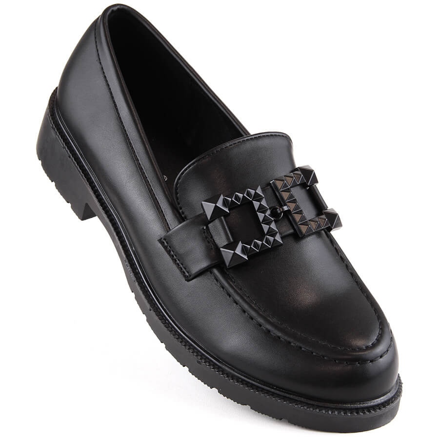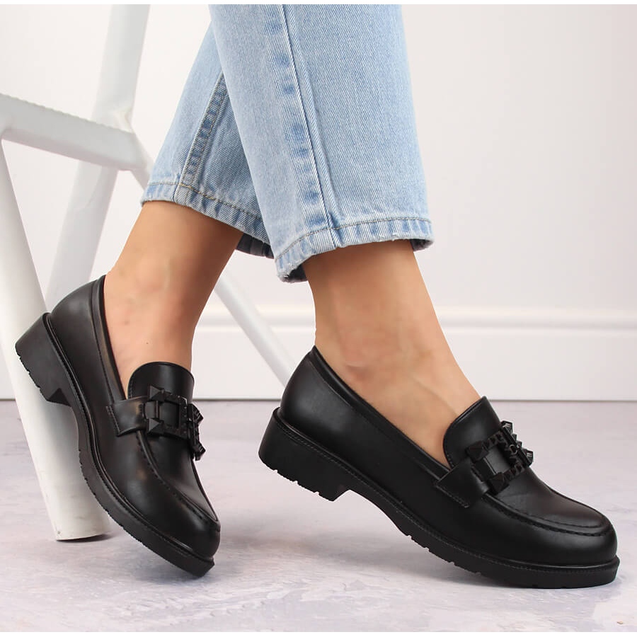Details: Damenschuhe, Slip-on-Mokassins mit Verzierung, schwarz S.Barski HY371