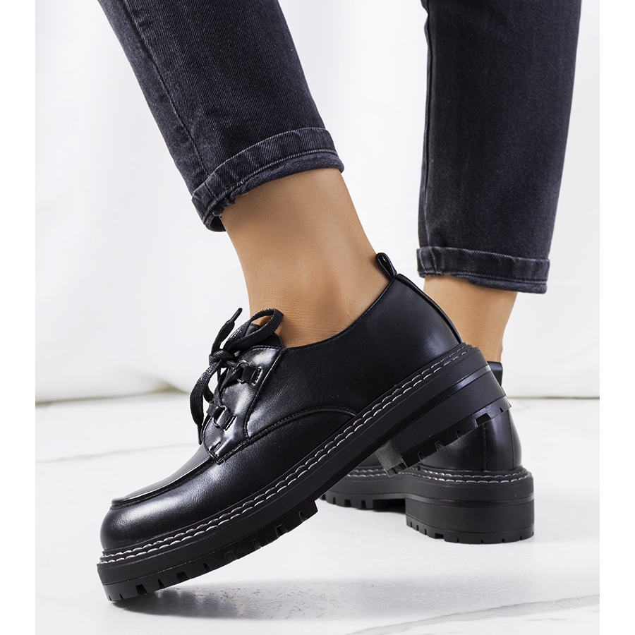 Entdecken Sie die Mode neu mit den schwarzen Labor-Damenschuhen, die sich durch eine hohe Traktorsohle auszeichnen – ein echter Hit dieser Saison! Perfekt für Frauen, die ihrem Styling ein bisschen Modernität und Originalität verleihen möchten.