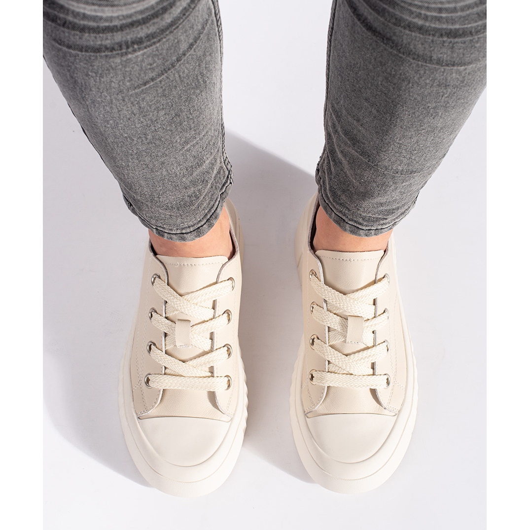 Entdecken Sie eine neue Version von Daily Elegance mit beige Leder -Frauen -Sneakers einer anderen Marke. Diese stilvollen Schuhe kombinieren einen sportlichen Charakter mit einem lässigen Finish, der perfekt zu den neuesten Trends passt. Sie sind ausschließlich aus natürlichen Leder, sowohl innen als auch nach außen hergestellt und bieten nicht nur Komfort, sondern auch für viele Jahre lang.