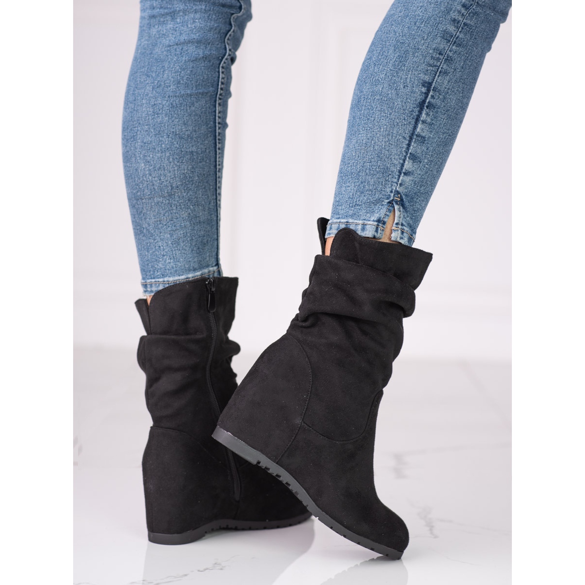 SHELOVET Damenstiefel auf dem Shelovet Wedge mit gekräuseltem Obermaterial schwarz