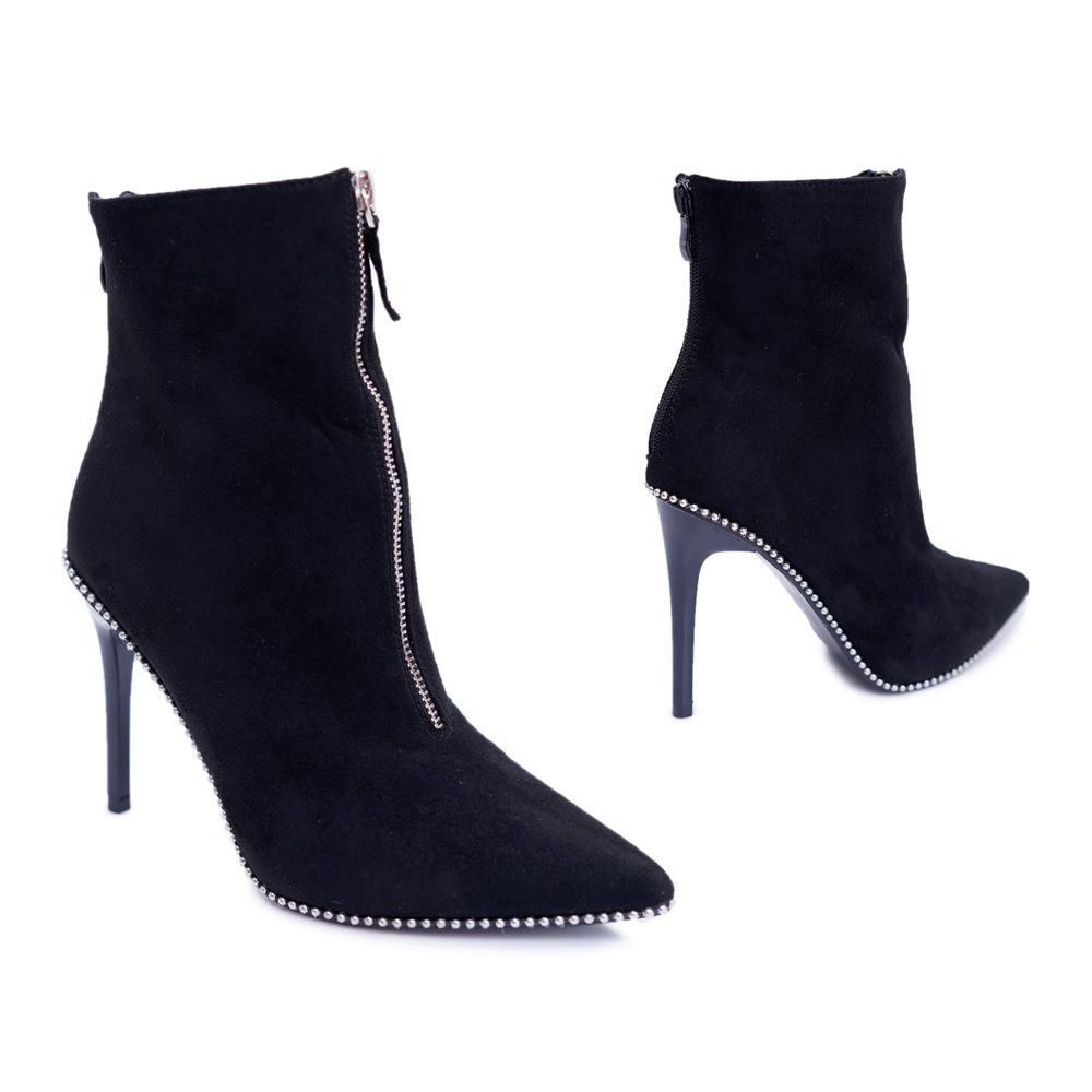 Die schwarzen Stiefeletten von Lu Boo Suzy fallen nicht nur durch den Absatz auf, sondern auch durch einzigartige Details. Zwei Reißverschlüsse sind nicht nur ein praktisches Detail, das das Anziehen erleichtert, sondern auch ein originelles Dekorationselement. Der Reißverschluss an der Vorderseite der Stiefel ist funktionell und lässt sich öffnen, sodass Sie die Schuhe schnell an Ihre Bedürfnisse und Vorlieben anpassen können. Strasssteine sind ein weiteres modisches Statement, das es unmöglich macht, diese Stiefel zu ignorieren.