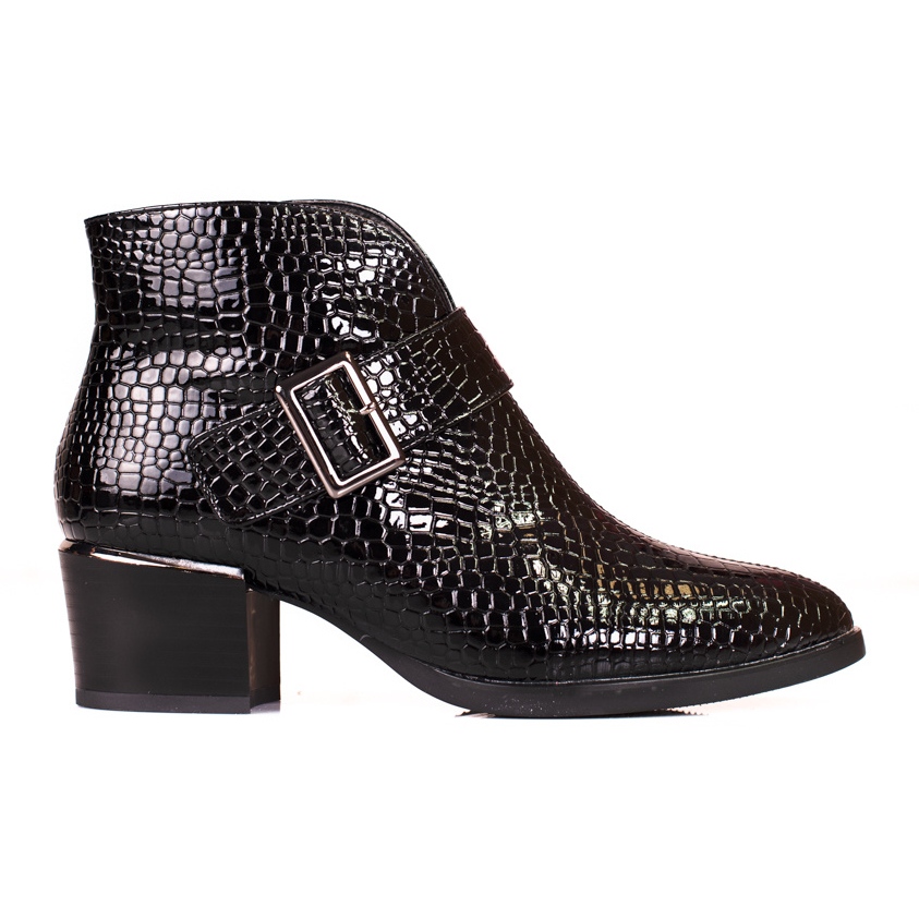 Die Shelovet-Stiefeletten für Damen von Vinceza mit niedrigem Absatz sind eine ausgezeichnete Wahl für Frauen, die elegante und bequeme Alltagsschuhe suchen. Aus hochwertigem Lackleder gefertigt, sehen sie stilvoll und modisch aus. Dank der schwarzen Oberfläche passen sie perfekt zu verschiedenen Stilrichtungen, sowohl lässig als auch formeller.