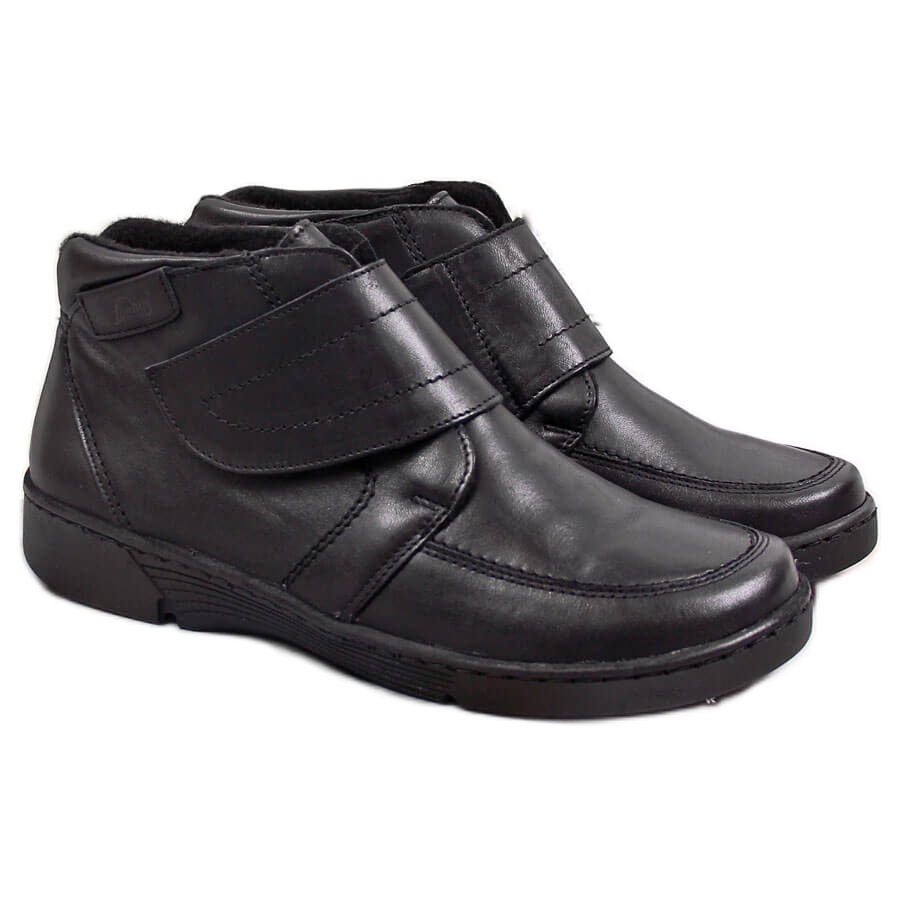 Details: Damenstiefel aus Leder mit Klettverschluss Łukbut 676 schwarz