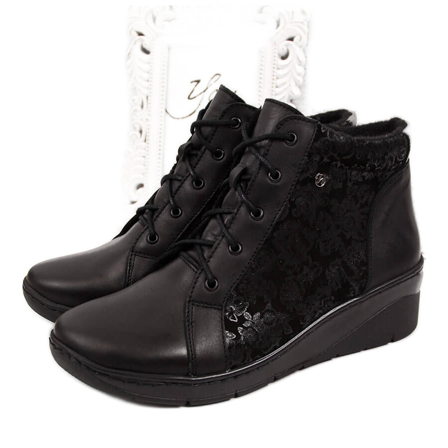 Details: Damenstiefel aus schwarzem Leder mit Keilabsatz, schwarzer Helios 537