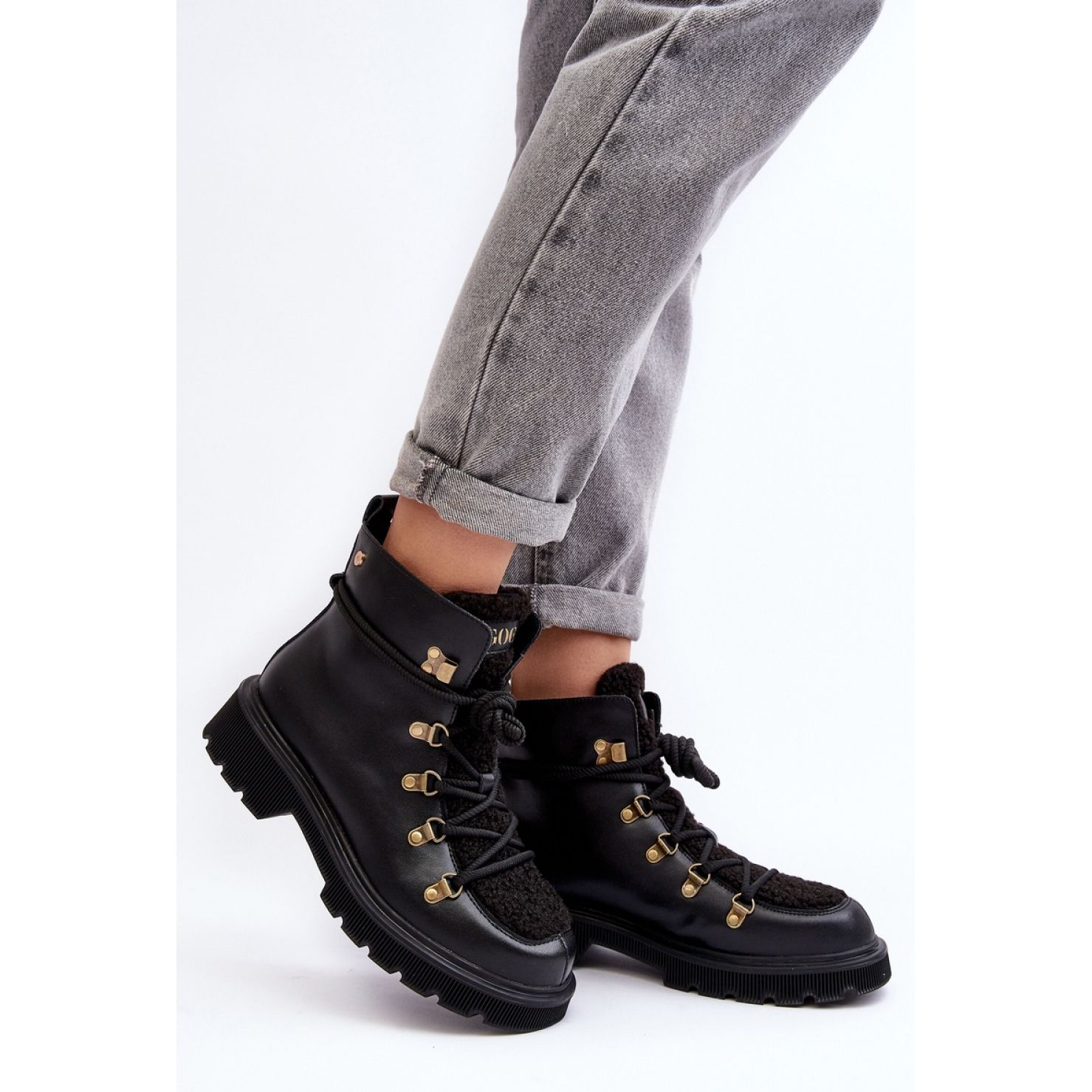 Das Wandern von Frauen aus Goe ist eine gute Wahl für die kommenden coolen Tage. Diese schwarzen Traper aus hochwertigem natürlichen Leder kombinieren Eleganz mit Funktionalität. Dieses Modell wurde für Frauen entwickelt und wird durch einen klassischen Verschluss ausgewählt, mit dem Sie den Fuß perfekt entsprechen können.