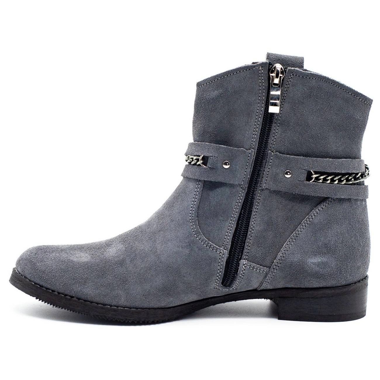 Elegante, komfortable und stilvolle - Olivier Luna -Stiefel in grauer Farbe sind ein idealer Angebot für kühlere Tage. Die subtile dekorative Kette gibt ihnen Charakter, dank der sie sowohl in alltäglichen als auch in eleganteren Stylisationen arbeiten werden. Der Innenraum des Schuhs ist mit einer weichen Schuhdecke isoliert, die den thermischen Komfort gewährleistet, und der profilierte Einsatz stabilisiert den Fuß beim Gehen.