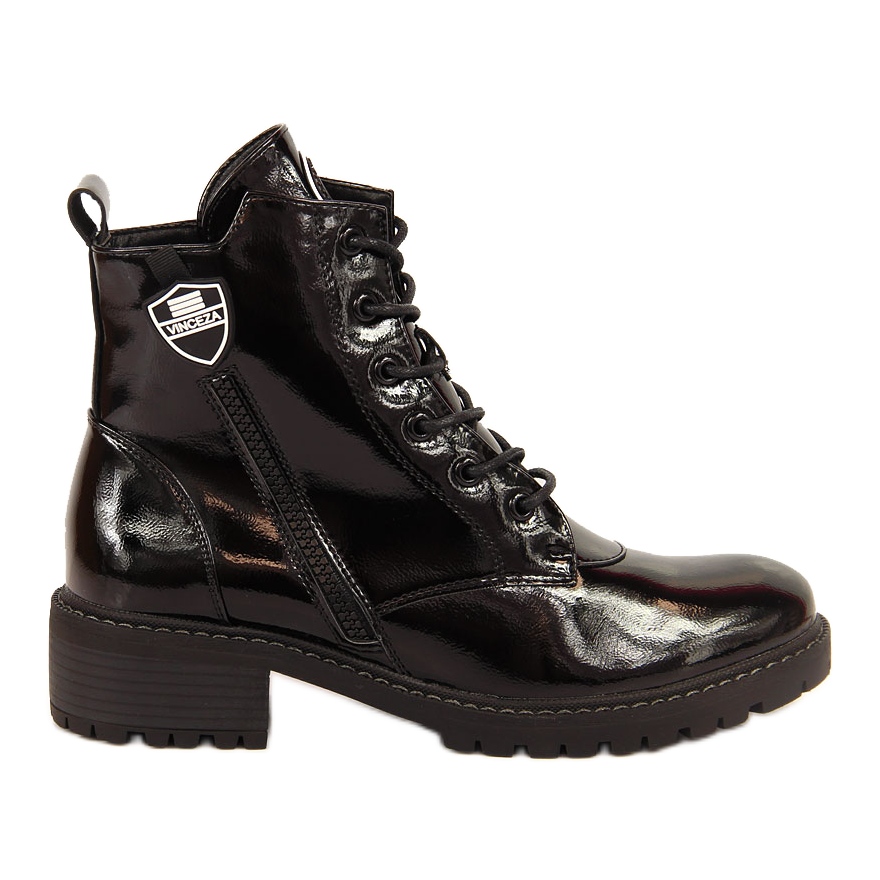 Entdecken Sie die perfekte Kombination aus Stil und Komfort mit den isolierten Arbeitsstiefeln für Damen von Vinceza. Diese schwarzen Lackstiefeletten sind die perfekte Wahl für kältere Tage und vereinen modisches Design mit Funktionalität.