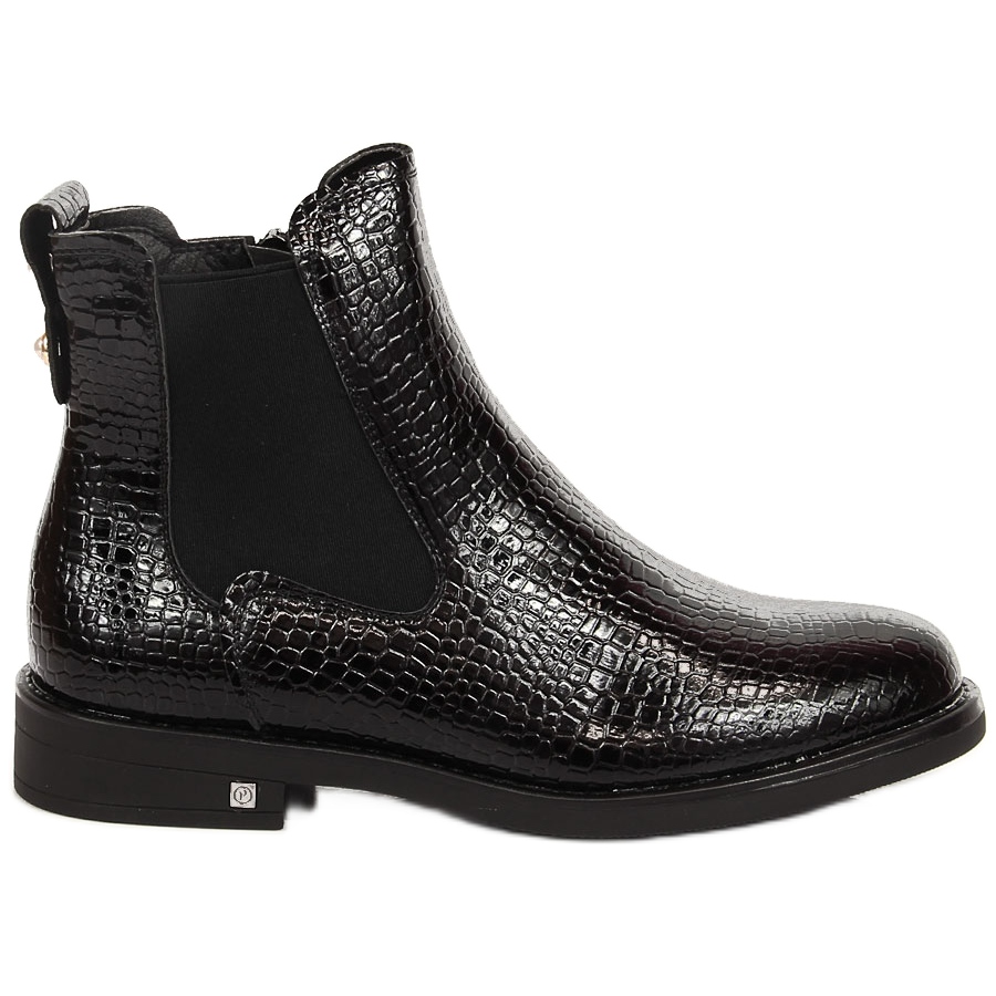 POTOCKI Damenstiefel, lackiert, schwarz, isoliertes Kroko, Potocki