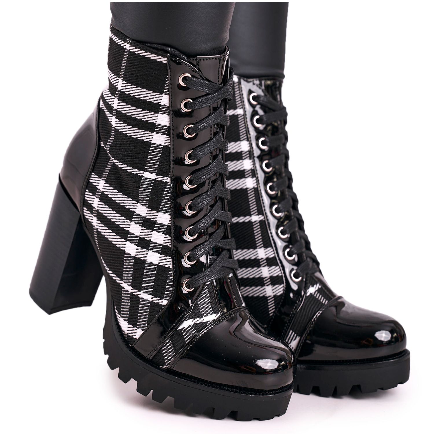 Die Schuhe bestehen aus lackiertem Faux-Wildleder, was ihnen ein elegantes Aussehen verleiht, und das schwarz-weiße Karomuster verleiht ihnen einen modernen Charakter. Die Isolierung in Form einer angenehmen Schuhdecke sorgt auch an kälteren Tagen für ein angenehmes Fußgefühl. Zusätzlich sorgen der Reißverschluss und die Schnürung für einfaches Anziehen und eine perfekte Passform.