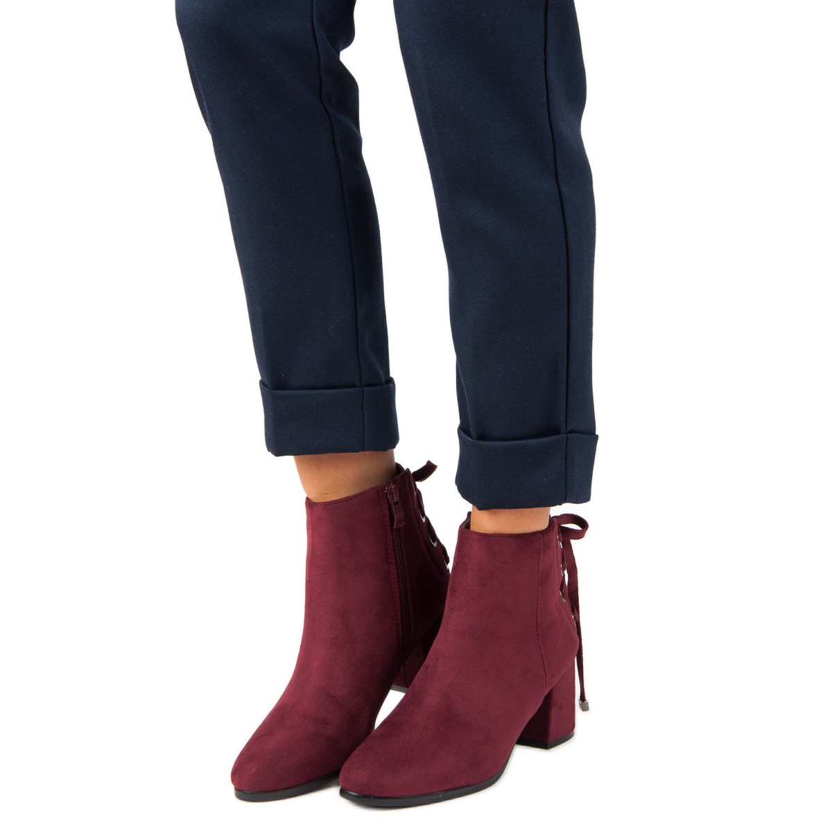Sind Sie auf der Suche nach Schuhen, die Ihrem Styling Charakter verleihen? Das sind rote Damen-Stiefeletten mit Schnürung, die jede Modeliebhaberin begeistern werden! Gefertigt aus hochwertigem ökologischem Wildleder zeichnen sich diese Schuhe nicht nur durch ihre intensive Farbe aus, sondern auch durch einen einzigartigen Schnitt, der ins Auge fällt.