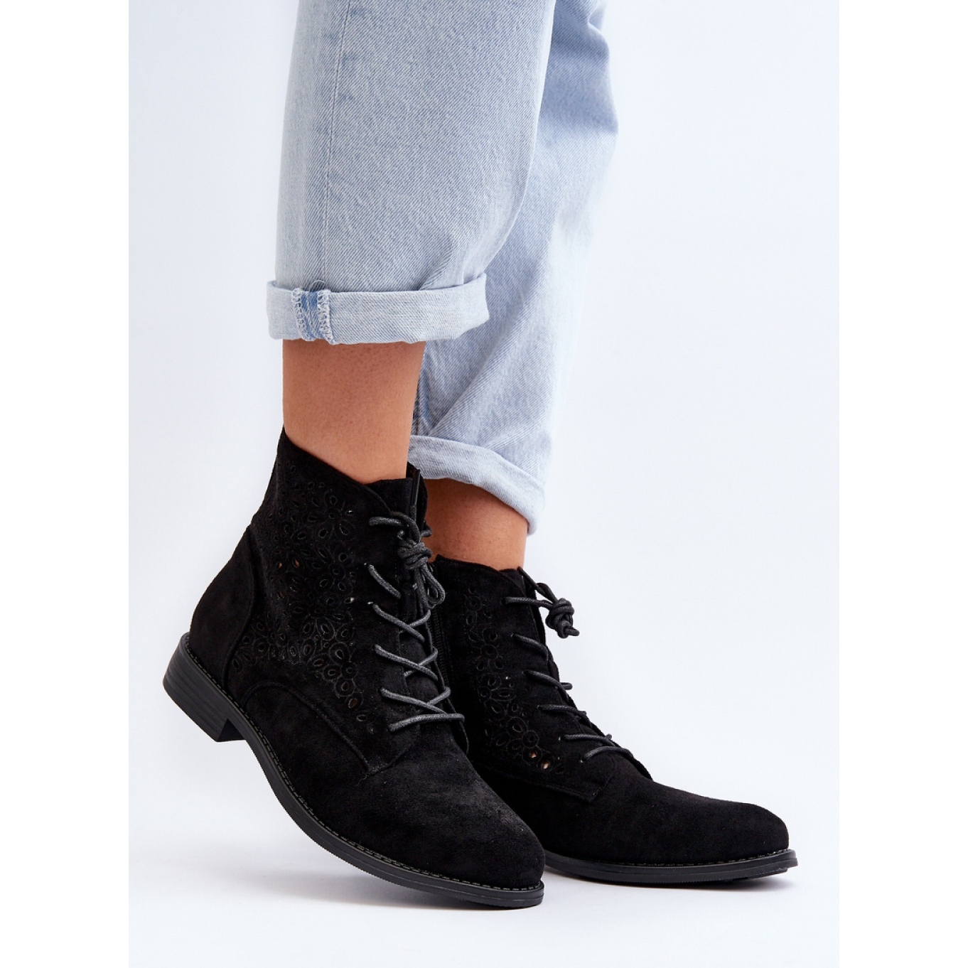 Wir präsentieren elegante Frauenstiefel S. Barski Black, die modisches Design und Komfort kombinieren. Diese schwarzen Stiefel aus hochwertigem Öko -Wildleder werden durch ein openworks -Obermaterial unterschieden, das mit zarten Blüten verziert ist und ihnen einen einzigartigen Charakter verleiht.
