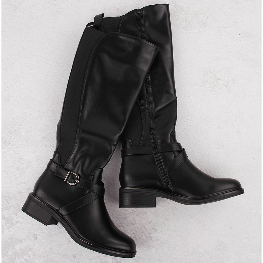 Die schwarze Farbe des Kosakens und des klassischen Schnitts machen dieses Modell zu vielen Stilen - von alltäglich bis zu den eleganteren. Eine flache Ferse mit einer Höhe von 4 cm sorgt für die Stabilität, und die runde Nase fügt alle Subtilität hinzu. Stiefel haben einen Reißverschluss, was es einfacher macht, einzuziehen und abzunehmen.