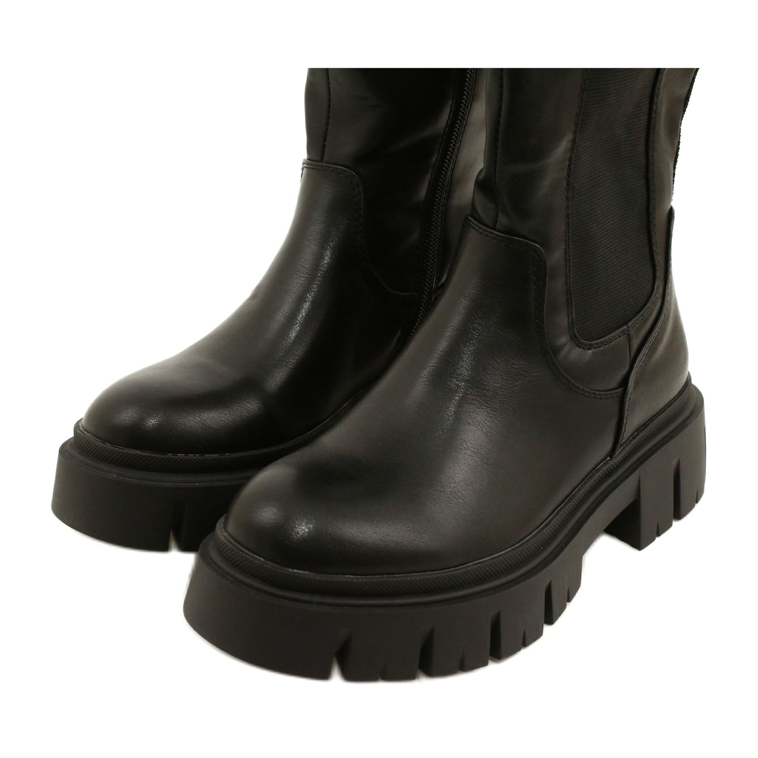 Elegante, warme und komfortable Evento-Stiefel 22KZ35-5089 ist ein idealer Ansprechverhältnis für kühle Herbst- und Wintertage. Das klassische Knie in einer universellen schwarzen Farbe mischt sich gut mit beiden Hose und mit einem Kleid oder einem Rock, wobei Stil und femininer Charakter hinzugefügt werden.