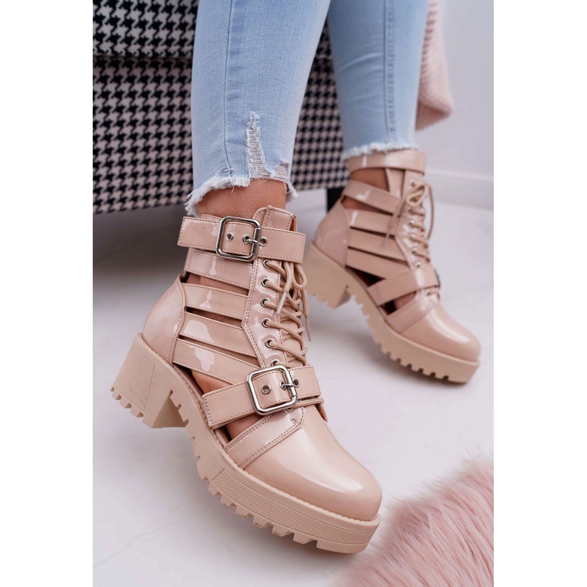 Wir präsentieren Ihnen außergewöhnliche Damenstiefel von SEA, die die perfekte Ergänzung zu Frühlingsstilen sind. Diese eleganten, lackbeigen Stiefeletten vereinen modernes Design mit hohem Tragekomfort. Dank des Zwei-Schnallen-Verschlusses und der klassischen Schnürung erhalten Sie nicht nur einen stilvollen Look, sondern auch einen sicheren Sitz an Ihrem Fuß.
