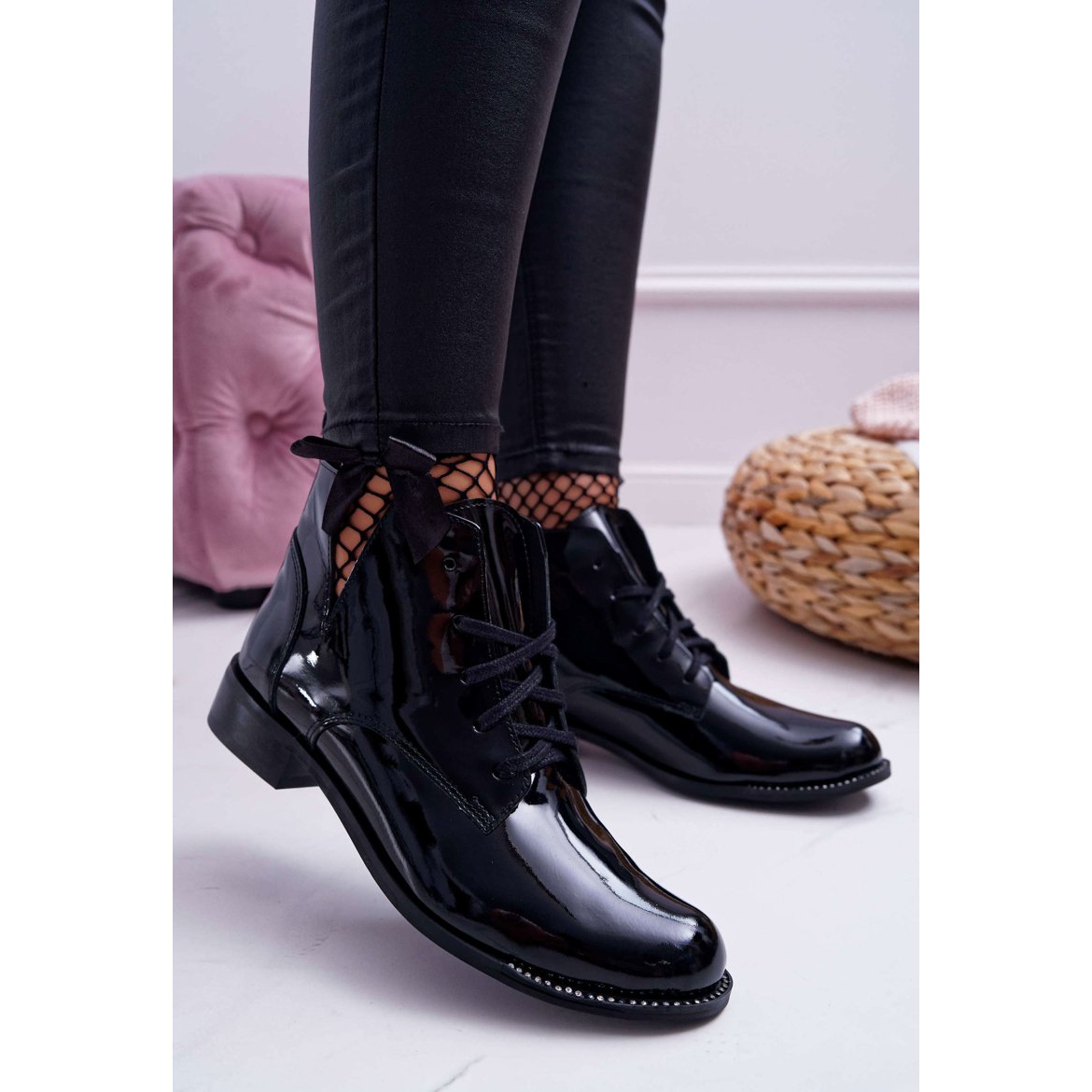 Details: Damenstiefel mit flachem Absatz Lackiert Schwarz Nicole 2420