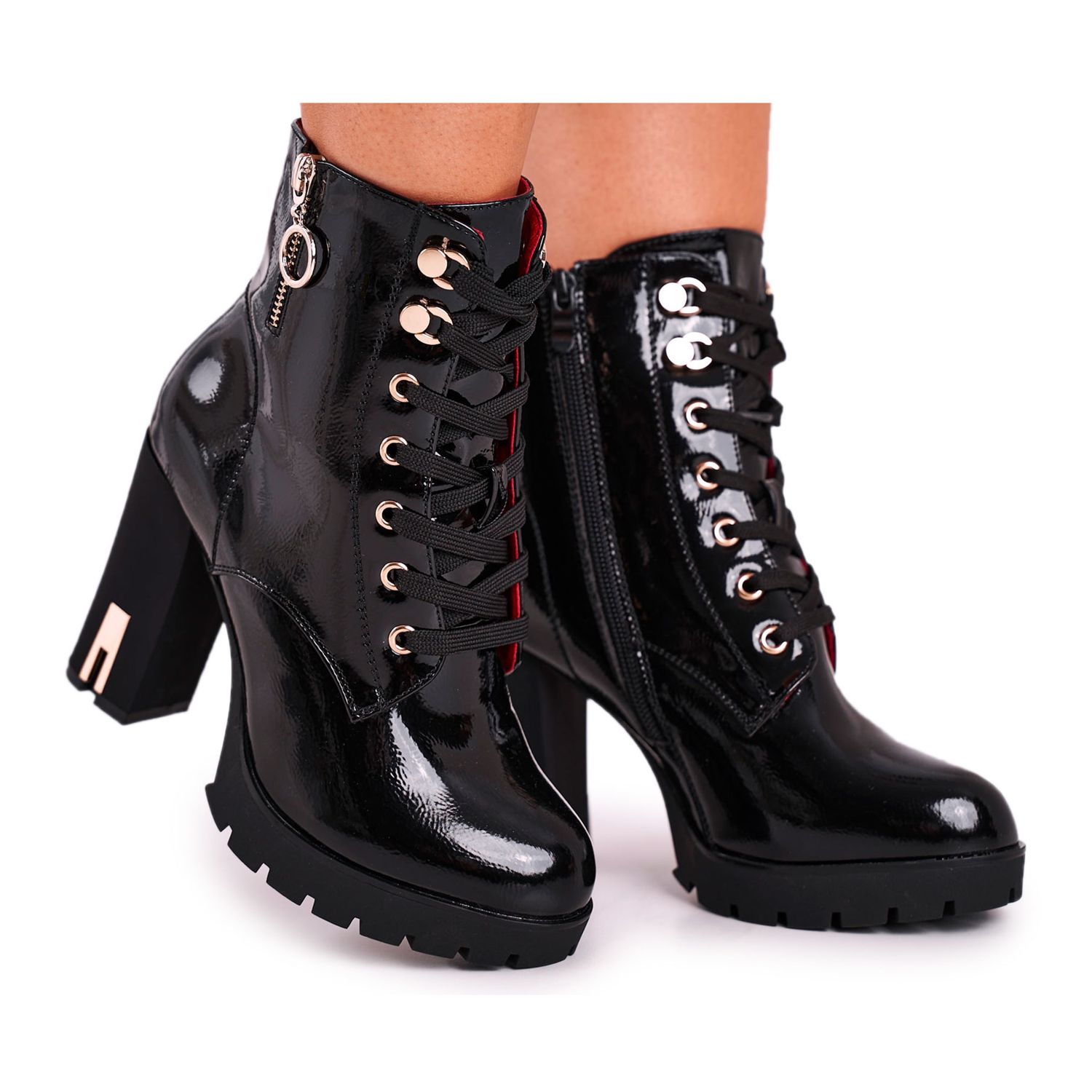 FE1 FE1 Damenstiefel mit hohem Absatz Lackiert Schwarz Kahina