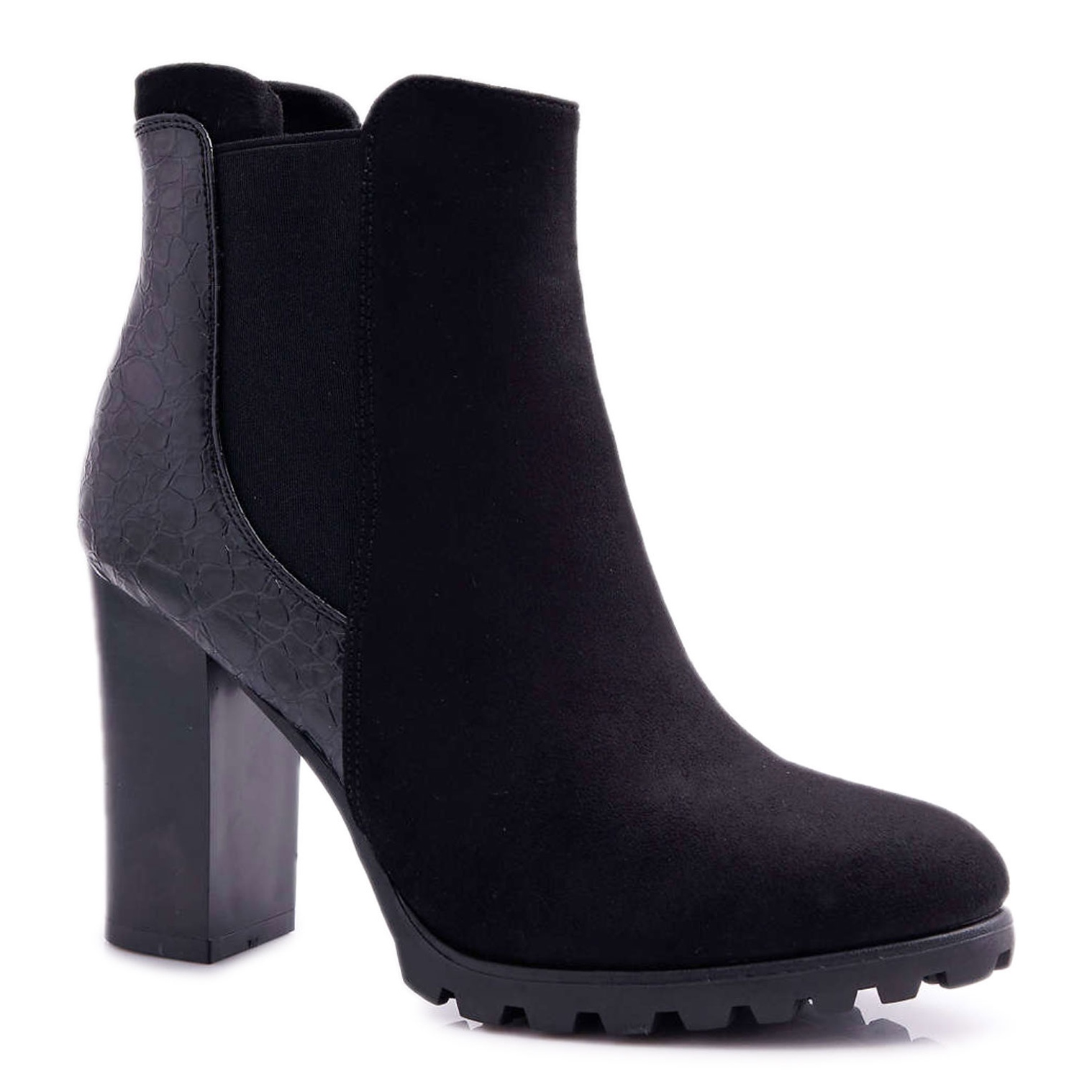 Die Stiefel zeichnen sich durch einen zarten 10 cm hohen Absatz aus, der nicht nur die Figur betont, sondern auch für Stabilität beim Tragen sorgt. Das Innere der Schuhe ist mit einer weichen Schuhdecke mit kurzem Flor isoliert, die auch an kälteren Tagen Komfort garantiert. Das Obermaterial aus Öko-Wildleder und Faux-Wildleder sorgt für Strapazierfähigkeit und einen eleganten Look, und durch die schwarze Farbe passen die Stiefel perfekt zu verschiedenen Stilen.