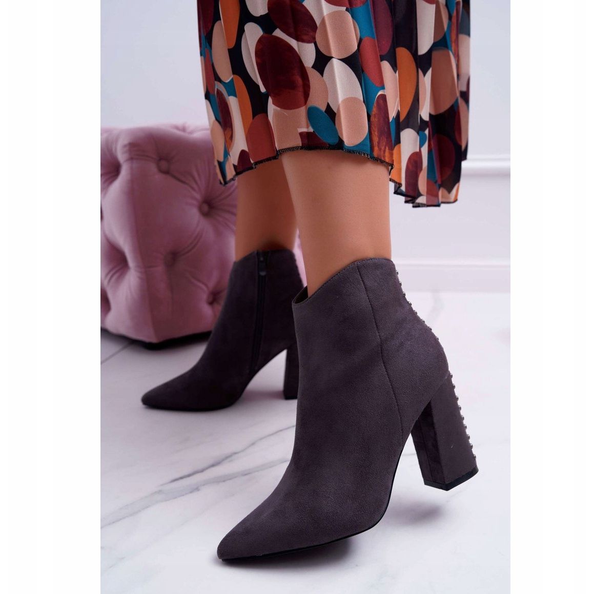 Details: PS1 Damenstiefel mit hohem Absatz und Nieten in Spitzgrau Snack