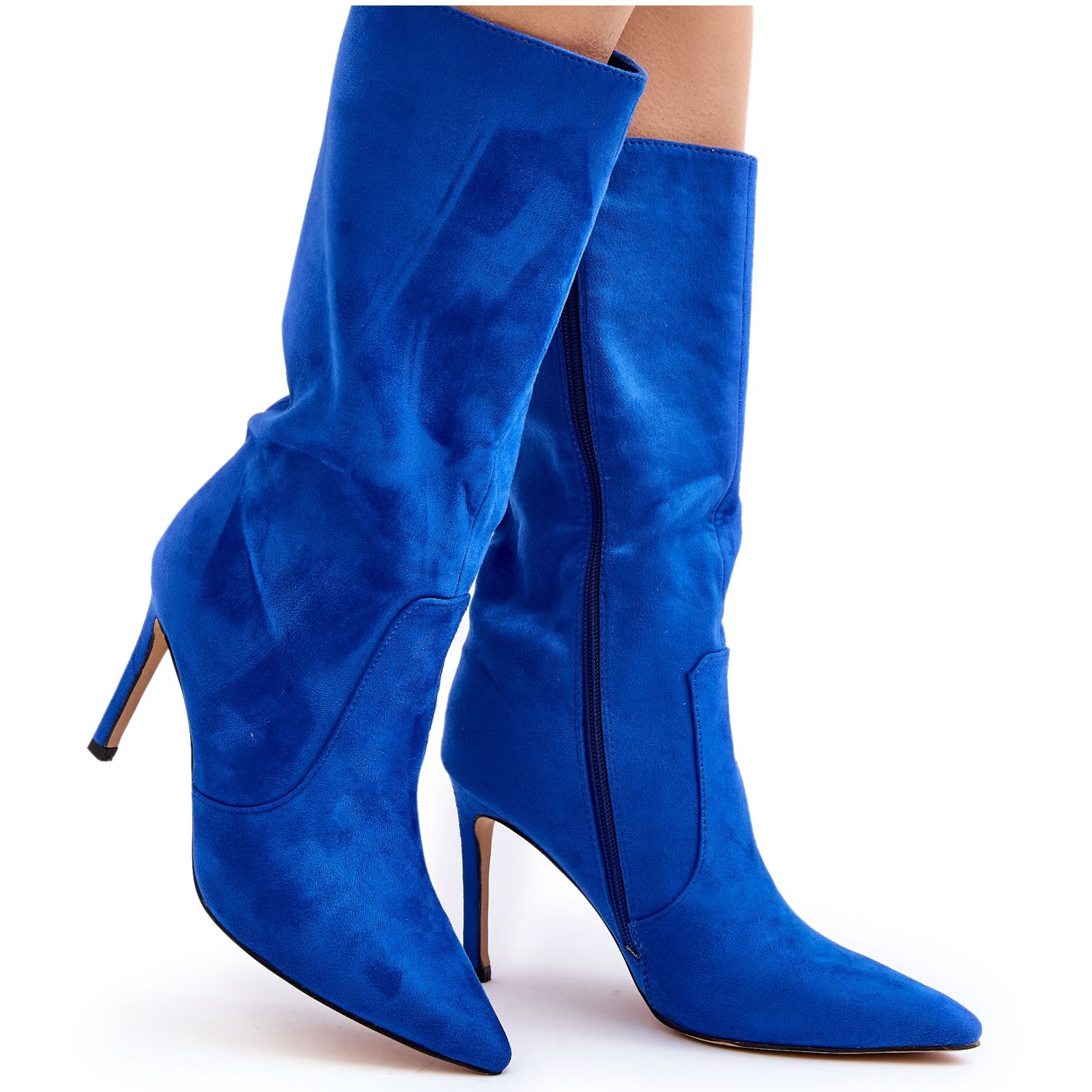 Details: Damenstiefel mit mittelhohem Absatz und hohem Absatz, blaue Odetteia
