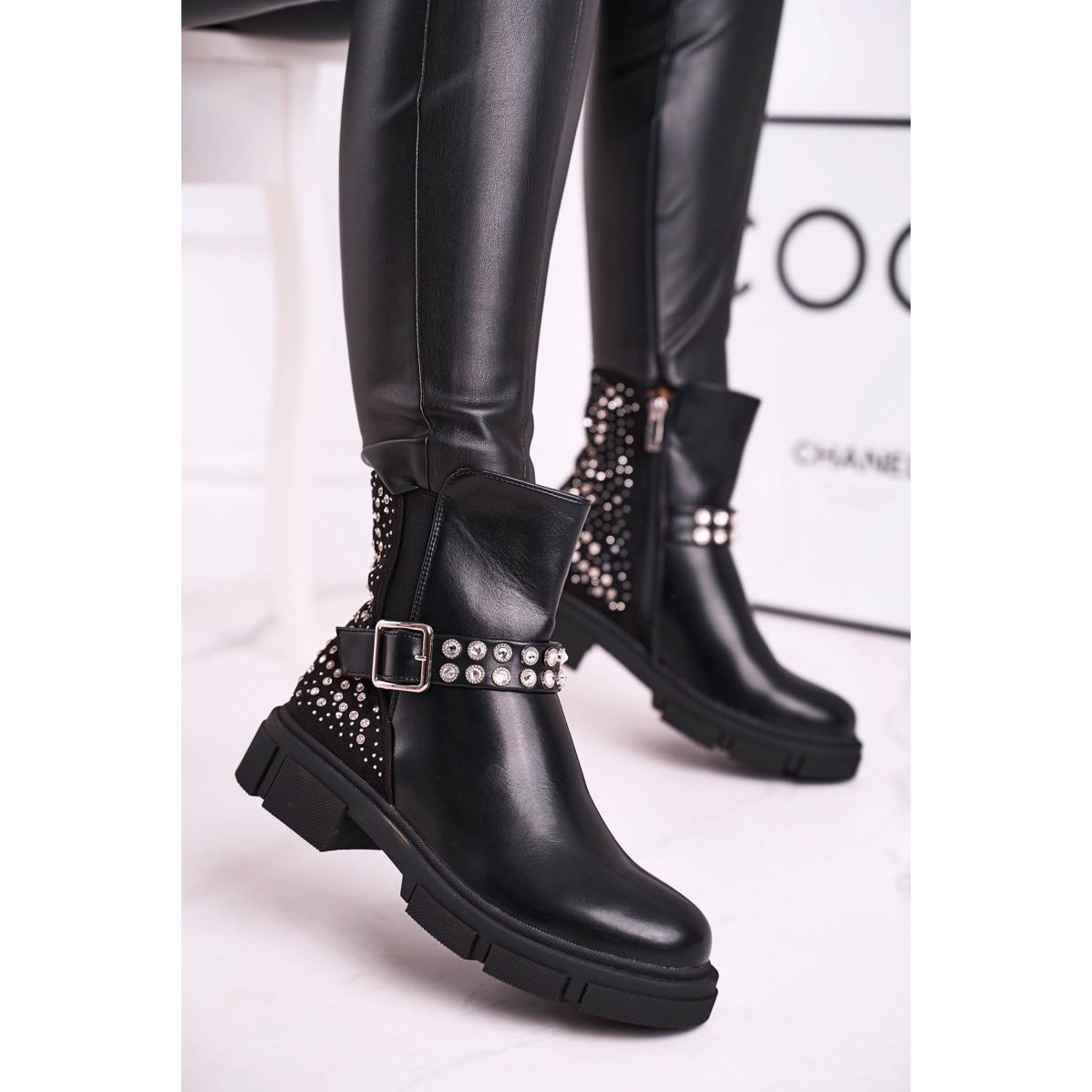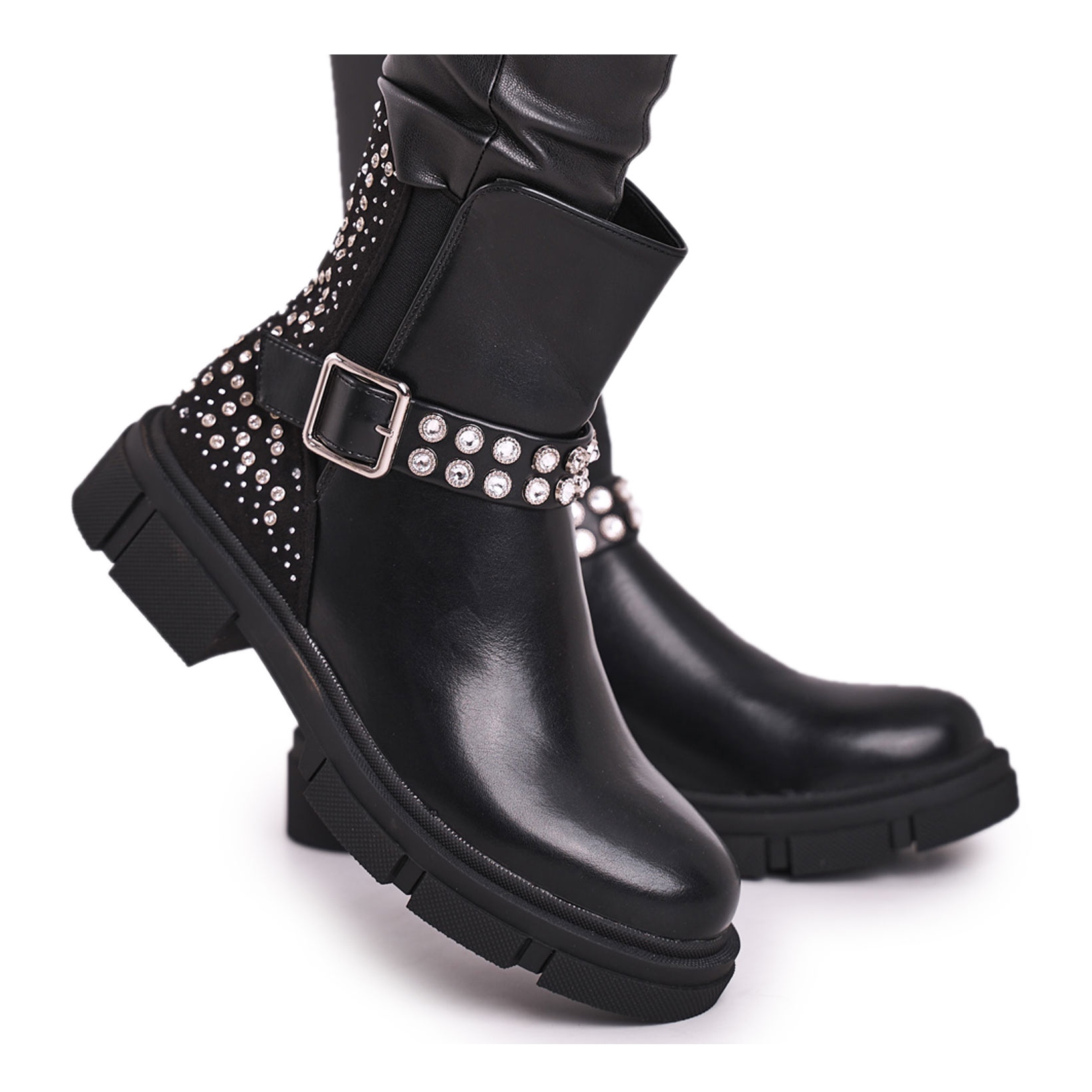 Wir präsentieren die Damenstiefeletten HAN Giuliana in elegantem Schwarz, die zu einem untrennbaren Element Ihrer Garderobe werden. Diese äußerst stilvollen Schuhe werden dank ihres einzigartigen Designs, das mit einer originellen Schnalle und Strasssteinen auf der Rückseite des Obermaterials verziert ist, die Herzen von Modeliebhabern erobern.