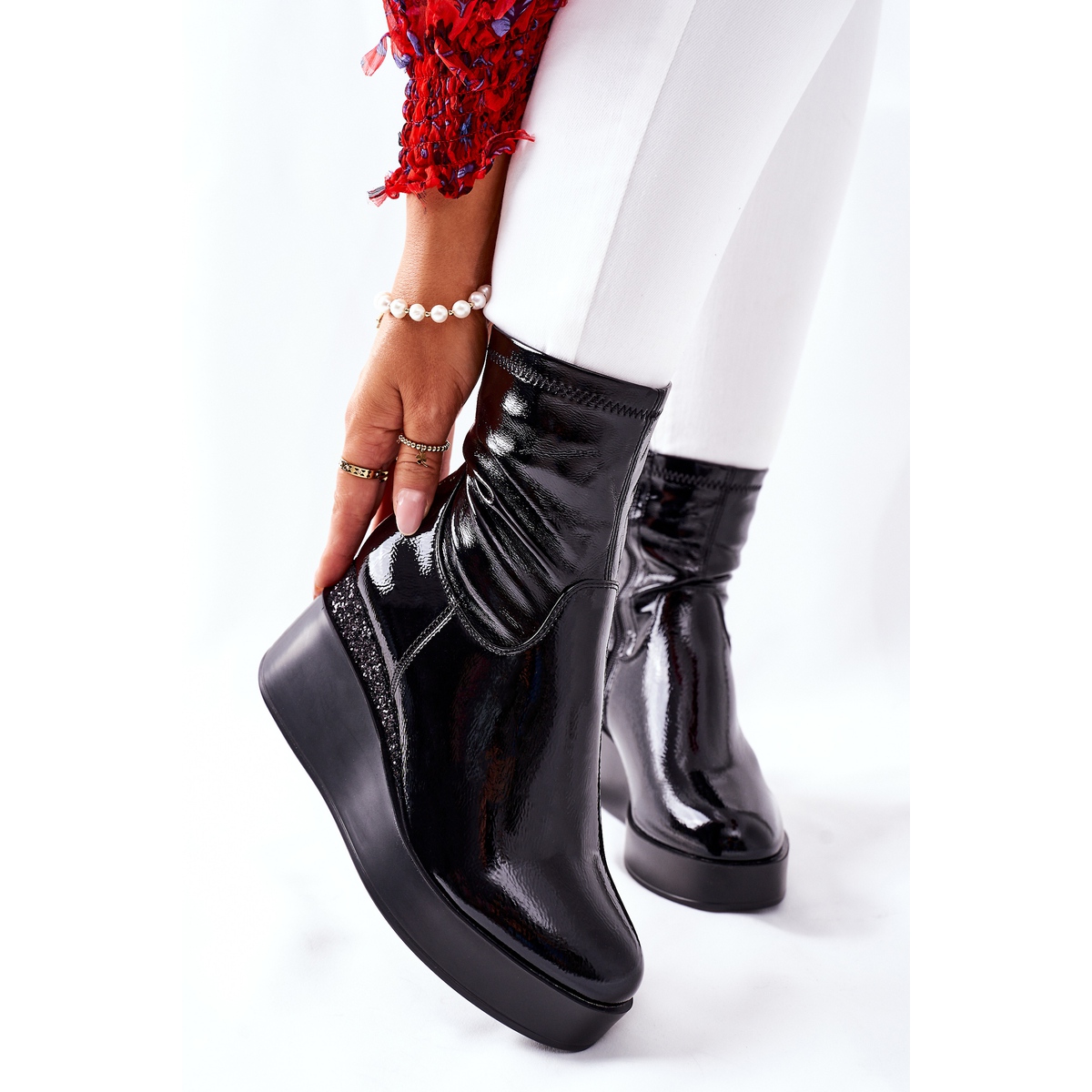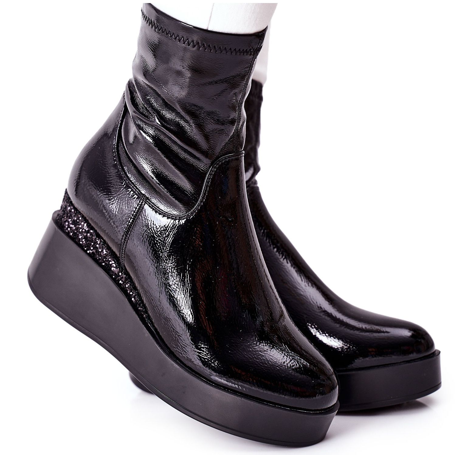 S.Barski S.Barski Damenstiefel On Wedge Lackiert Schwarz Therapie