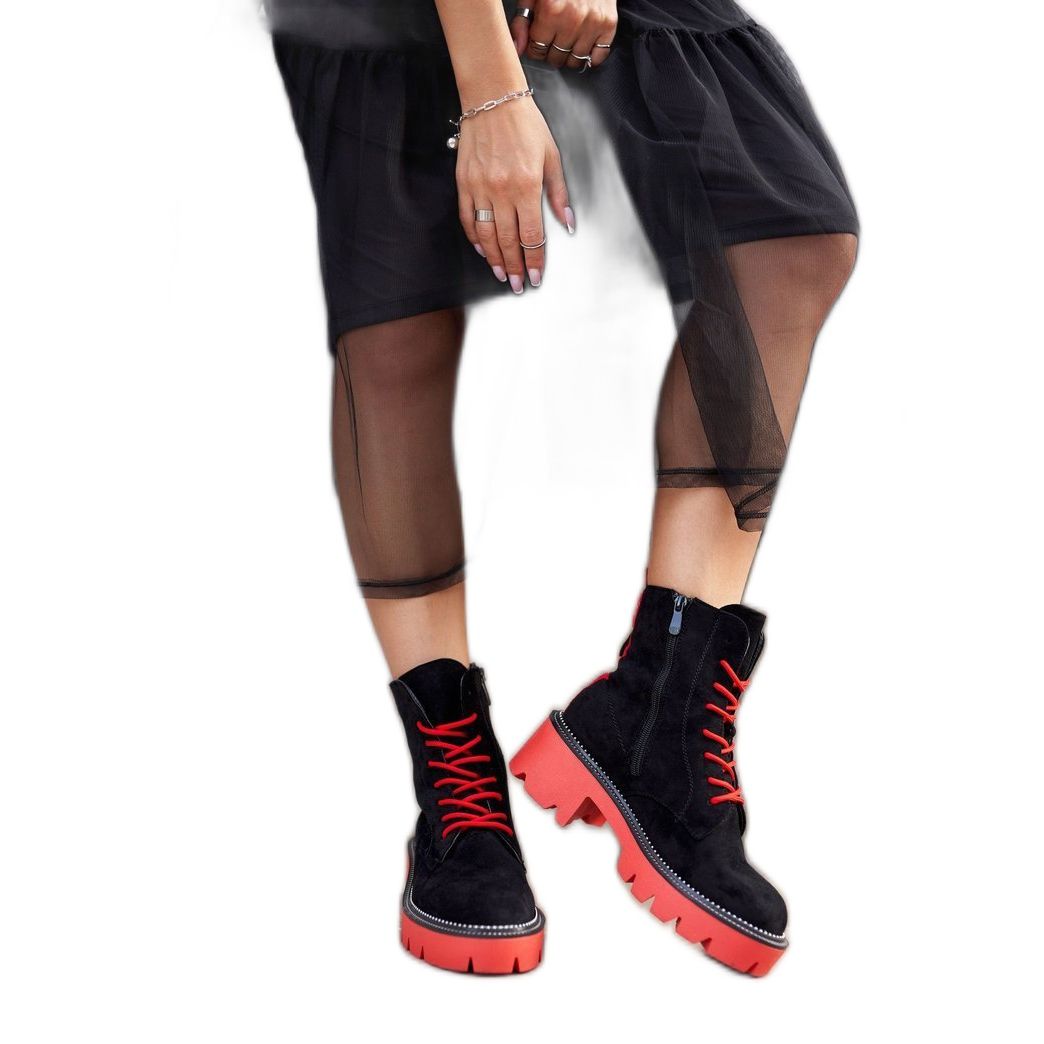 PS1 PS1 Damenstiefel Schwarz Rot Wildleder Malawi