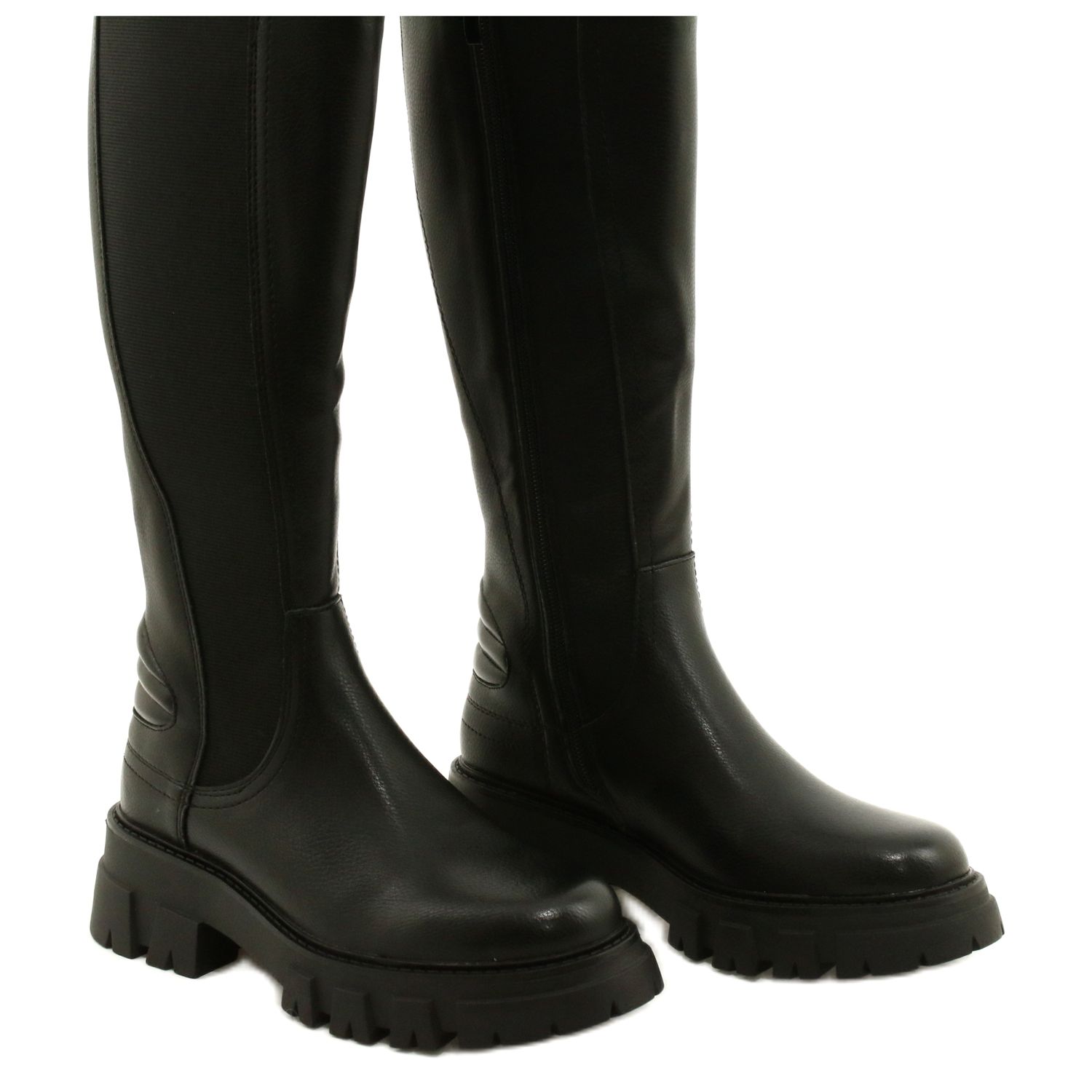 Durch die runde Spitze und die klassische, zeitlose Form sehen die Stiefel am Bein phänomenal aus und verleihen jedem Styling Eleganz. Die obere Höhe reicht bis zum Knie und ein stabiles 5,5 cm hohes Plateau sorgt für Komfort auch bei längerem Tragen. Darüber hinaus erleichtert der Reißverschluss das An- und Ausziehen der Schuhe.