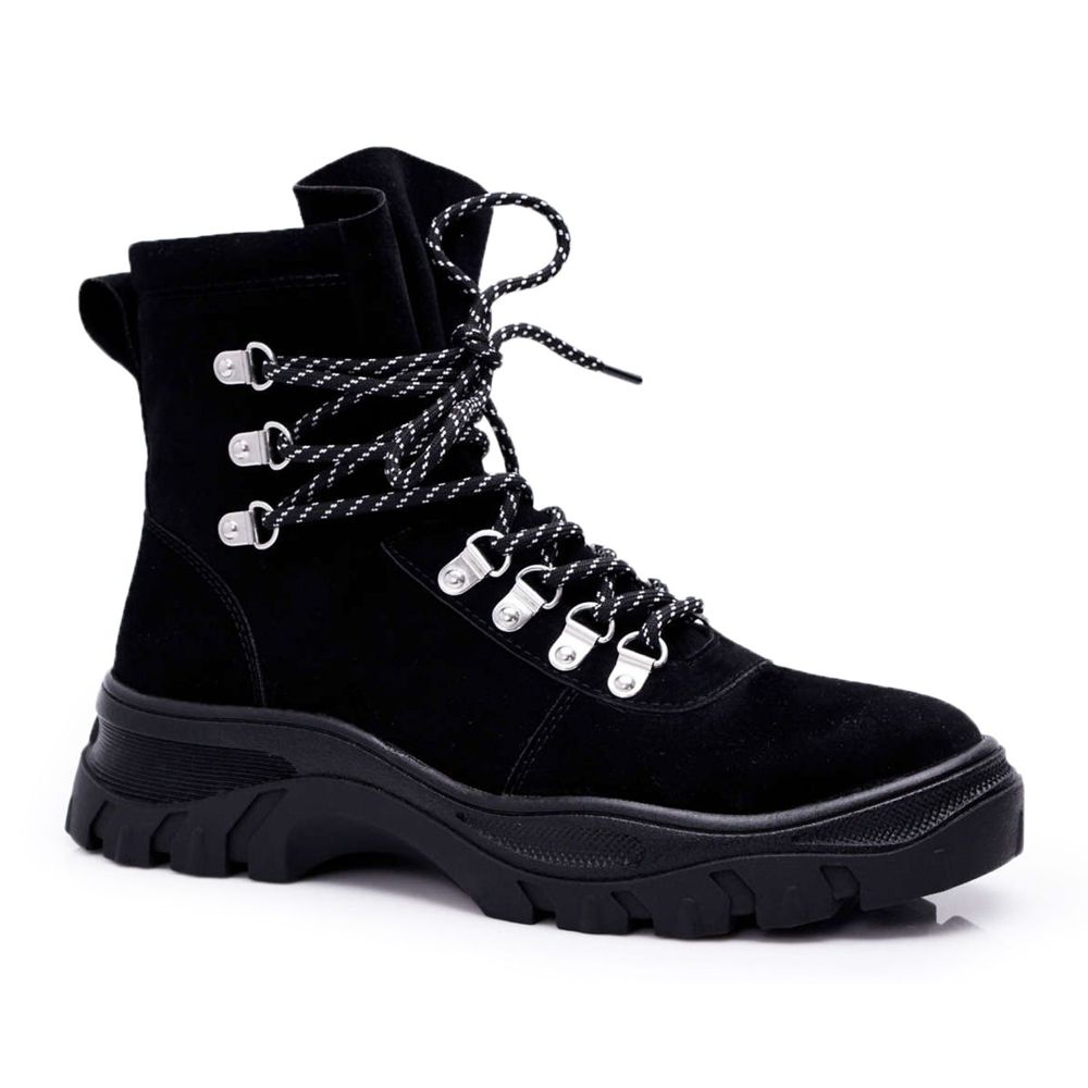 Die Stiefel sind geschnürt, was eine perfekte Anpassung an den Fuß ermöglicht und zusätzlichen Halt bietet. Ihr minimalistisches Design ohne Muster macht sie äußerst universell und kann zu vielen verschiedenen Anlässen getragen werden.
