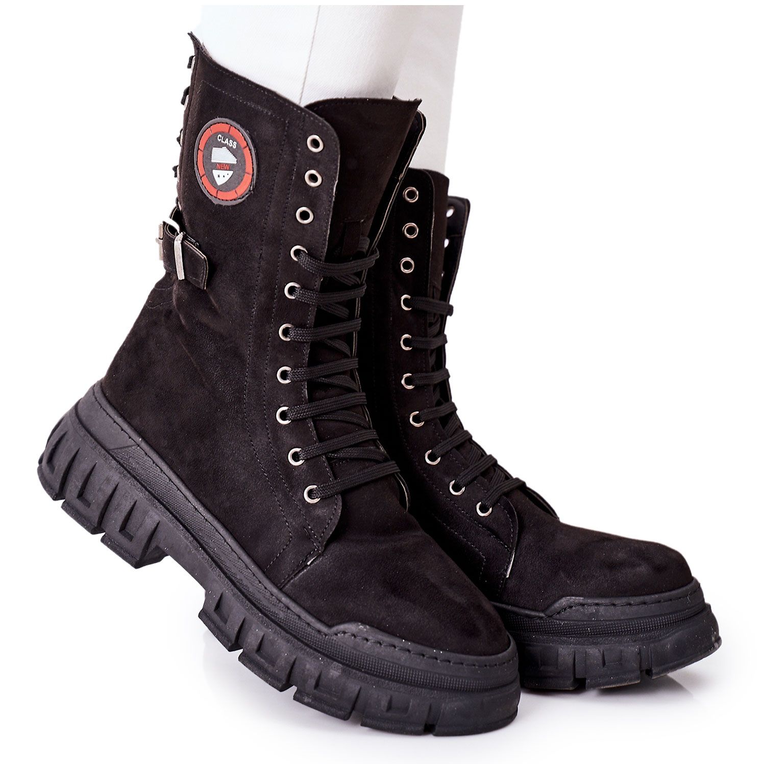 Die Damen-Stiefeletten NAVY DOT sind eine perfekte Kombination aus Stil und Komfort, die mit Sicherheit die Aufmerksamkeit jedes Modeliebhabers auf sich ziehen wird. Diese schwarzen Worker aus ökologischem Wildleder zeichnen sich durch ihr elegantes Aussehen und ihre Funktionalität aus. Der isolierte Innenraum, gefüttert mit einer hochwertigen Schuhdecke, sorgt für Wärme und Komfort an kälteren Tagen.