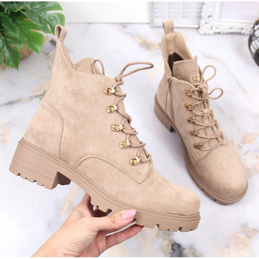 Wählen Sie beige Wildleder-Arbeiterstiefel für Damen von S.Barski, wenn Sie eine Kombination aus Stil, Komfort und Funktionalität suchen. Sie eignen sich perfekt für Winter- und Herbsttage und passen perfekt zu lässigen Kombinationen sowie als Element eleganterer Outfits.