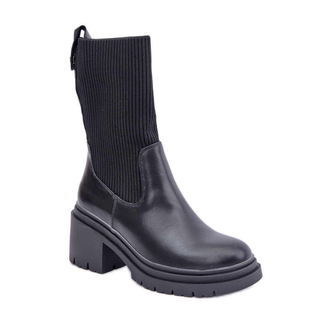 Entdecken Sie Eleganz und Komfort dank unserer modischen Frauenstiefel mit einem elastischen Sockenmaterial. Diese schwarzen Stiefel aus hochwertigem ökologischem Leder und Stoffen sind die perfekte Ergänzung zur Garderobe jeder modernen Frau. Ihre stabile Uhrferse mit einer Höhe von 7 cm sorgt auch bei langen Verschleißkomfort, was sie täglich zu einer großartigen Wahl macht.