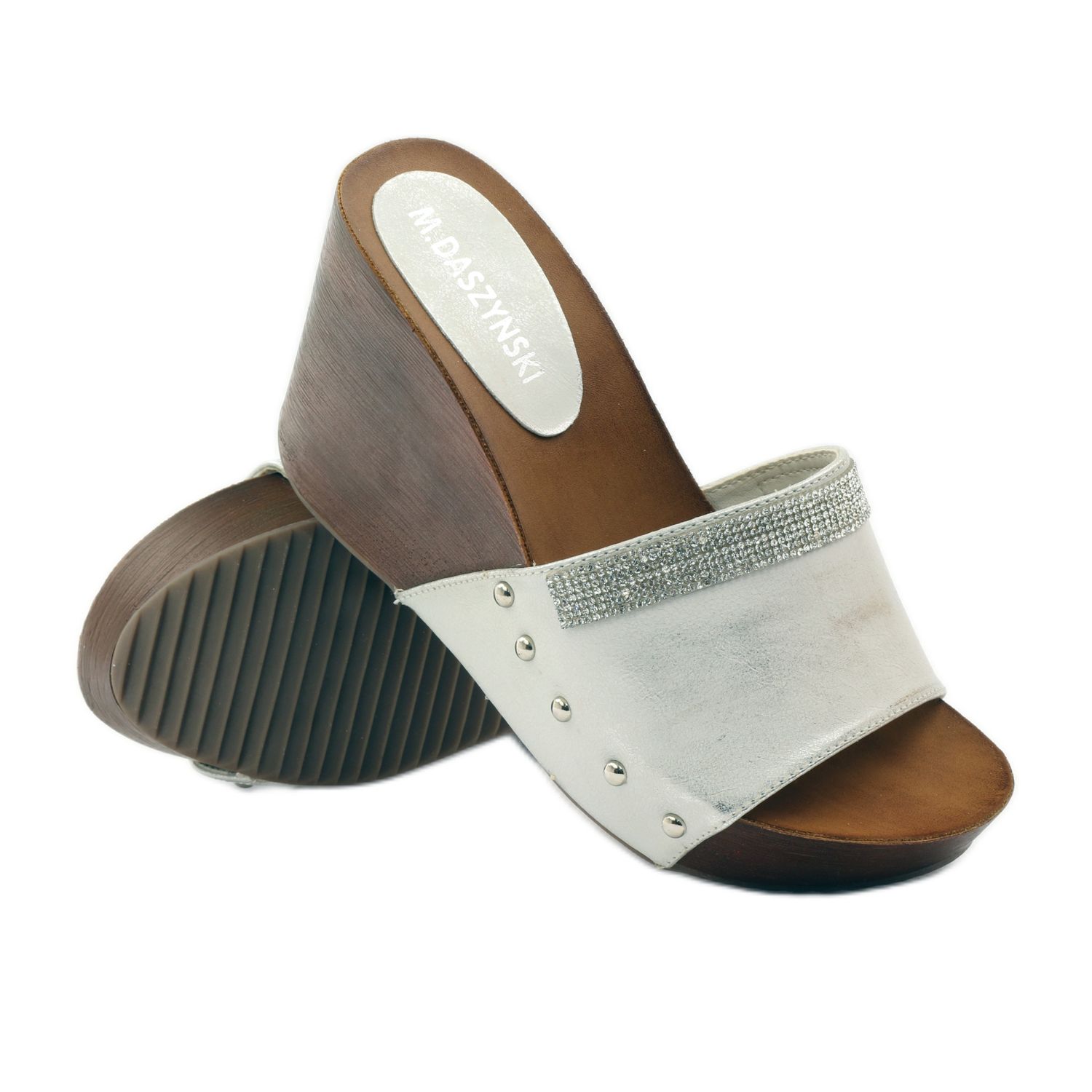 M.Daszyński M.Daszyński Daszyński Keilpantoffeln mit Zirkonia grau