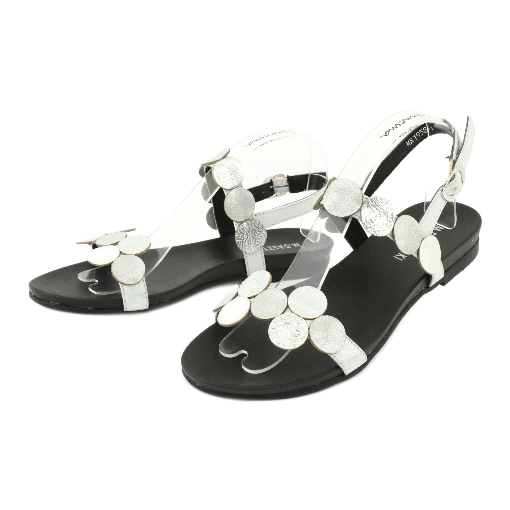 M.Daszyński M.Daszyński Daszyński MR1958-1 silberne Sandalen mit Kreisen silber-