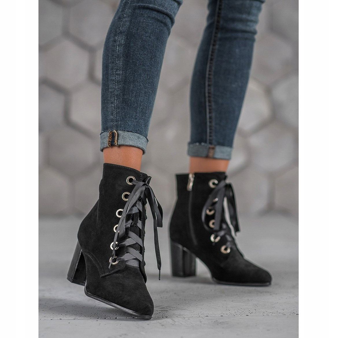 Das aus hochwertigen Materialien gefertigte Wildleder-Kunstleder verleiht ihnen einen eleganten Look, während die synthetische Sohle für Traktion und Haltbarkeit sorgt. Die Stiefel haben einen integrierten, versteiften Absatz, der für Klasse und Komfort sorgt. Schnürsenkel und Reißverschluss erleichtern das An- und Ausziehen der Schuhe.