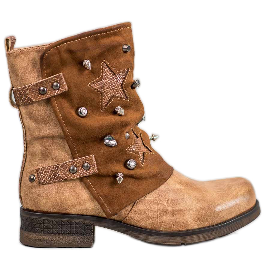 Wir präsentieren braune Damen-Baggies der Marke Super Mode, die eine perfekte Kombination aus Stil und Komfort darstellen. Ihr verzierter, knöchelhoher Schaft ist ein echter Hingucker und das ökologische lederähnliche Material sorgt für Strapazierfähigkeit und Pflegeleichtigkeit.