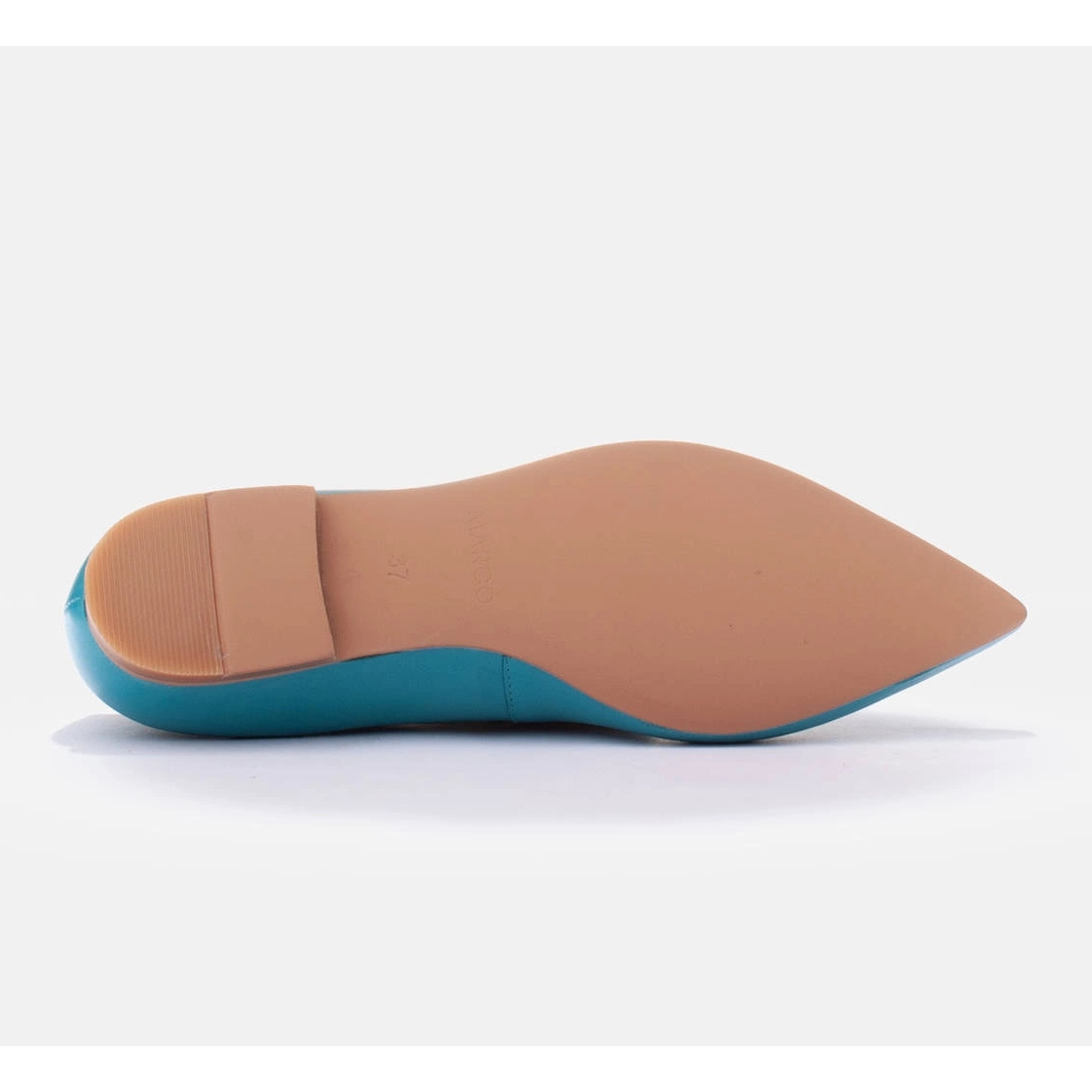 Klassische Ballerinas mit einem im Tiefenausschnitt, die Eleganz mit alltäglichem Komfort verbinden. Das Modell besteht aus hochwertigem blauem Getreideleder in Blau. Der etwas langgestreckte Mandelzeh verleiht schlanker, und das minimalistische, einheitliche Design bringt die Schuhe dazu, sowohl Büro- als auch lässige Stylisationen zugeordnet zu haben.