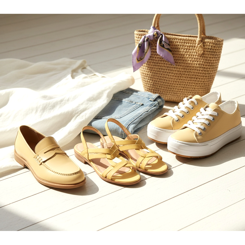 Die Farbe Nummer eins der Saison Frühjahr/Sommer 2026 ist Buttergelb – ein warmes, butterartiges Gelb, das aussieht, als wäre es in Sonnenlicht getaucht. Es ist kein knalliges Neongelb, sondern ein zarter, cremiger Farbton, der an Butter oder Vanillecreme erinnert. Es passt hervorragend zu Schuhen – Sandalen, Loafer und Sneakers in dieser Farbe verleihen dem Styling Frische und Optimismus.