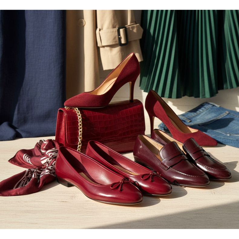 Rot in der Saison Frühjahr/Sommer 2026 geht weg von feurigen, auffälligen Tönen hin zu tiefen, reifen Farbtönen. Kirschrot und Burgund sind Farben, die jedem Styling Eleganz und Charakter verleihen. Schuhe in diesen Farben sind eine perfekte Alternative zu Schwarz – ebenso universell, aber viel interessanter.
