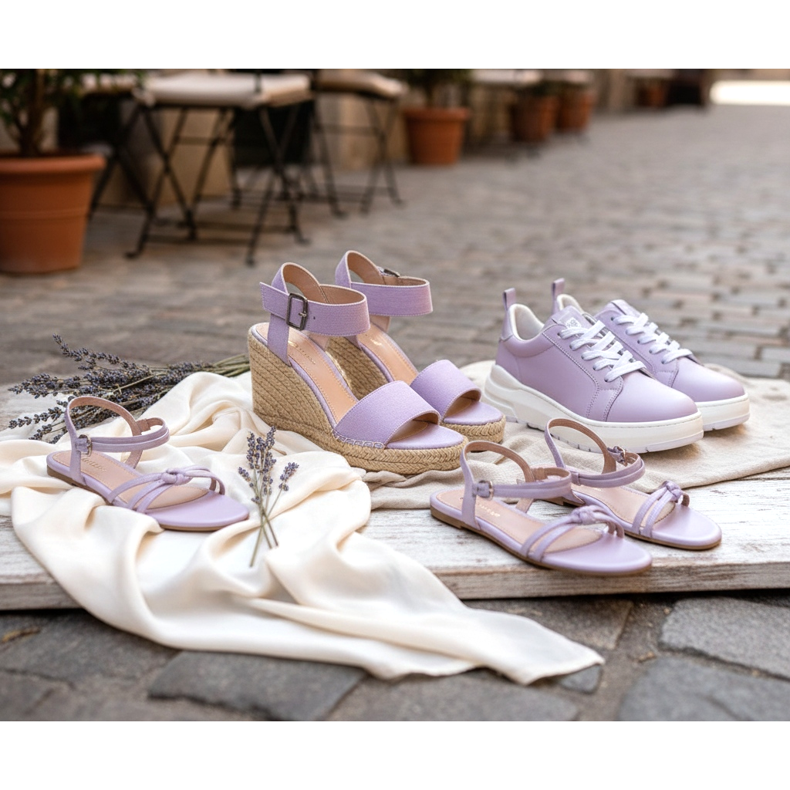 Lavendel und zartes Flieder sind Farben, die nach einer kurzen Pause mit neuer Energie auf die Laufstege zurückkehren. In der Saison Frühjahr/Sommer 2026 erscheint Lila im Schuhwerk in den zartesten, pudrigsten Varianten – es ist eine romantische, feminine und zugleich überraschend universelle Farbe.