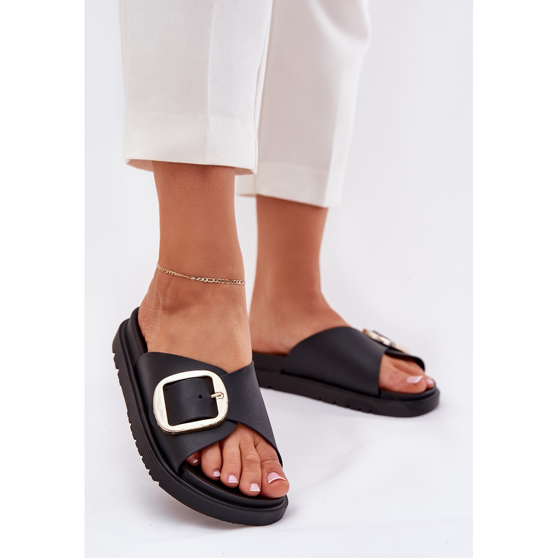 Details: Die Flip -Flops für Frauen auf der Plattform mit einer goldenen Klemme schwarz