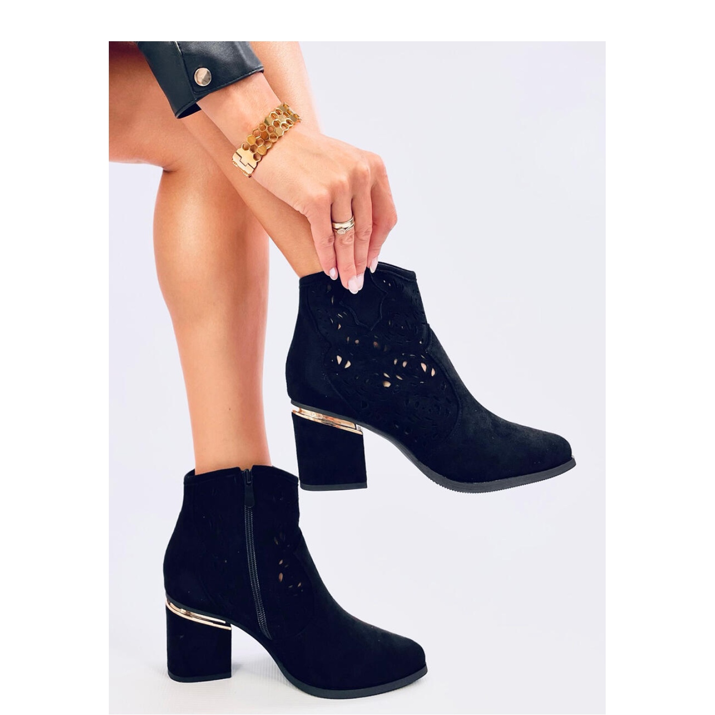 Details: Donovan Schwarze durchbrochene Stiefeletten mit hohem Absatz – Inello