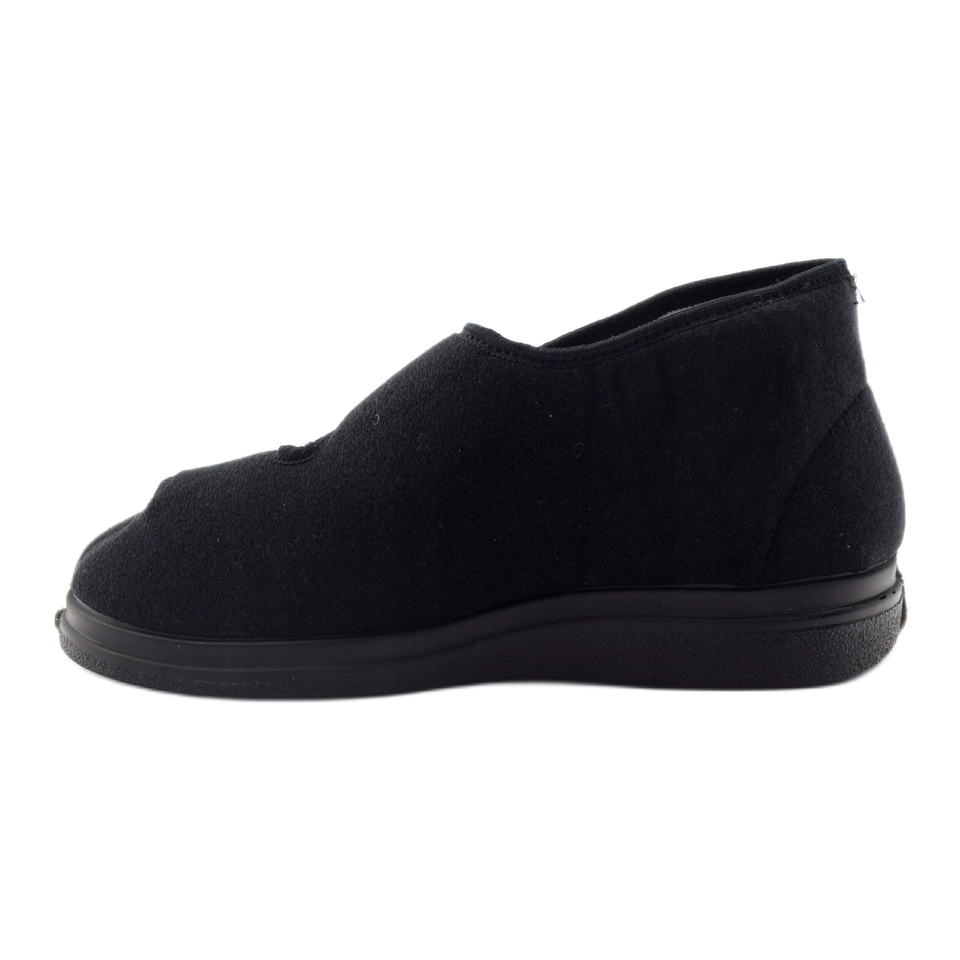 Die Hausschuhe zeichnen sich durch eine runde Nase und einen hohen Schnitt aus, der zusätzliche Unterstützung und Stabilisierung bietet. Klettverschluss ermöglicht das einfache Anziehen und Abnehmen, was äußerst bequem ist. Die Art der Sohle aus PU -Material garantiert die Haltbarkeit und den Widerstand gegen Schäden, und die schwarze Farbe entspricht verschiedenen Stilen.