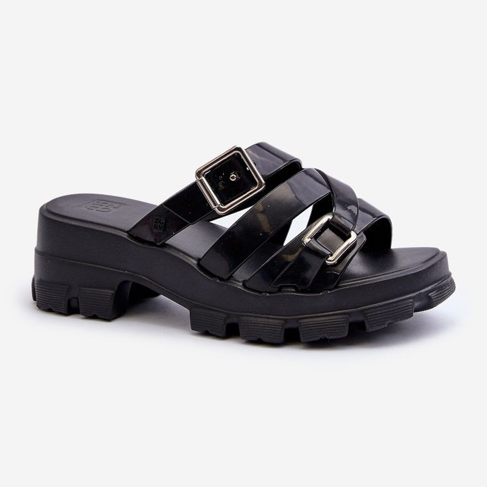 Die niedrige Ferse in Form eines 6 -cm -Hochblocks sorgt für Stabilität und Komfort, auch den ganzen Tag über zu tragen. Dank des weichen Plastikeinsatzes wird jeder Moment, der in diesen Flip -Flops verbracht wird, ein Vergnügen sein. Der Einsatz und die alleinige Auswahl aus hochwertiger Kunststoff garantieren Haltbarkeit und Komfort, und ihr minimalistisches schwarzes Design macht sie zu einer perfekten Ergänzung für jeden Sommerstilisierung.